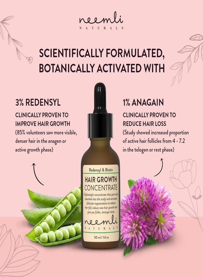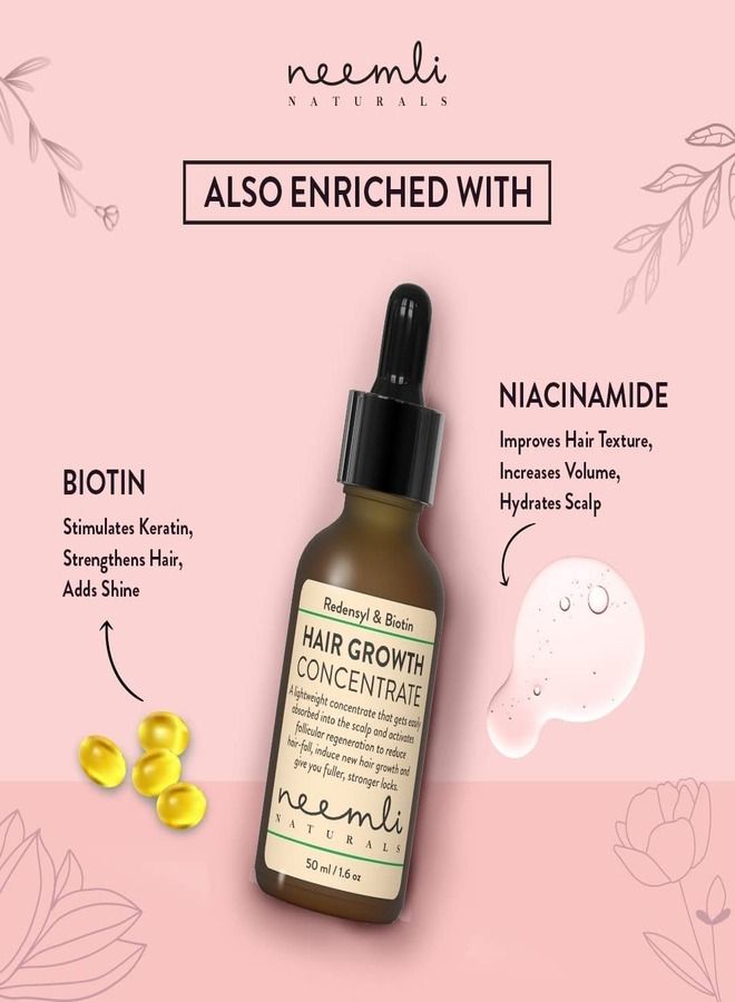 Introducing our Redensyl & Biotin Hair Growth Concentrate, a powerful formula designed to promote healthy hair growth and combat hair loss. This 50 ml bottle is packed with natural ingredients that work together to nourish and strengthen your hair from the roots to the tips.