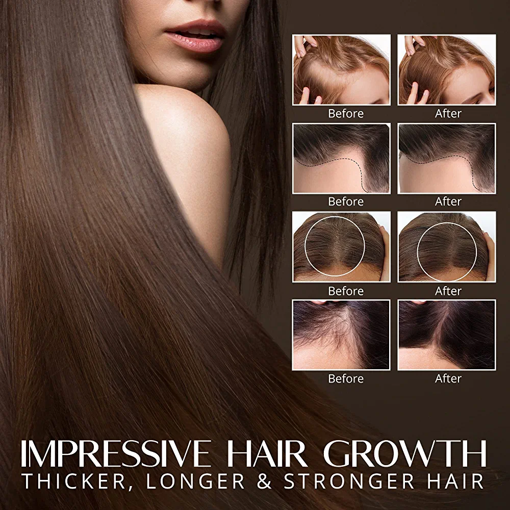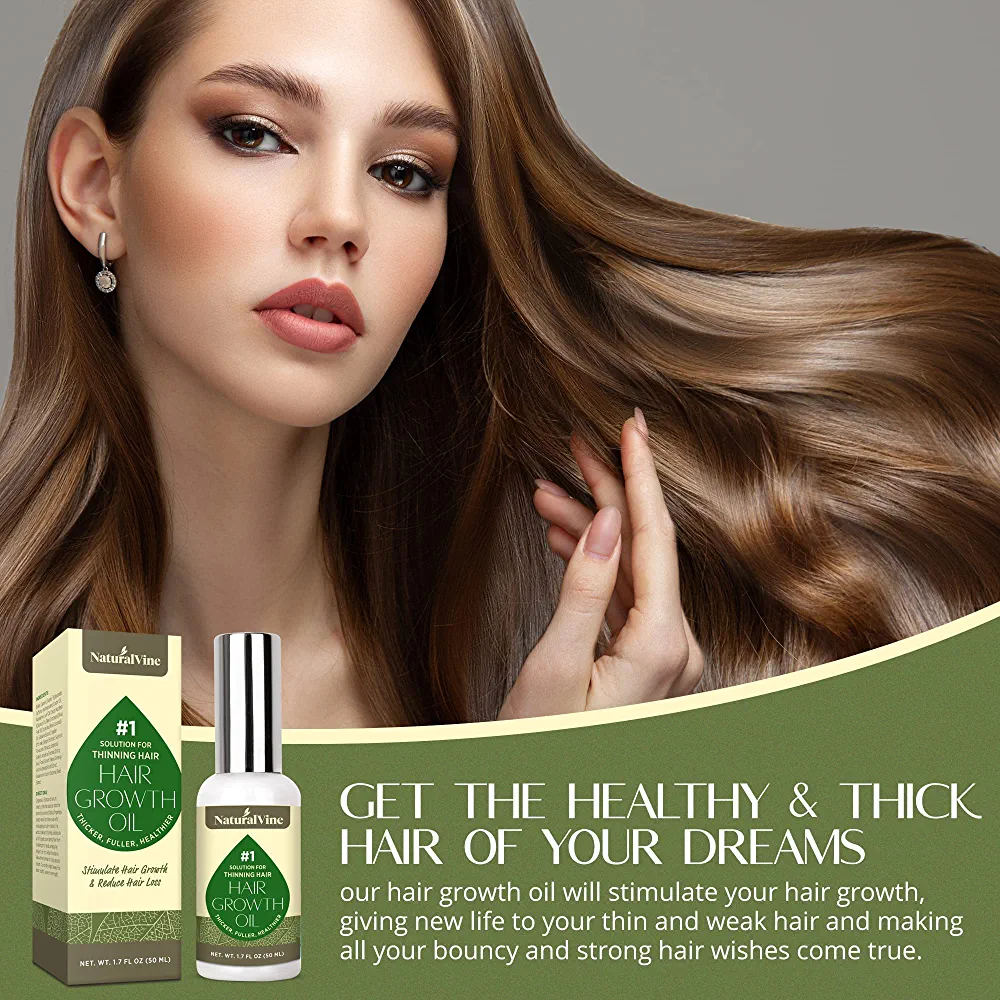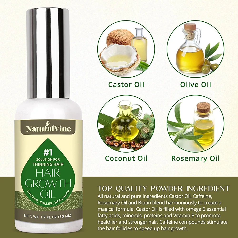 Introducing the Natural Vine Hair Growth Oil, an innovative hair growth serum that combines the benefits of Castor Oil, Rosemary Oil, Coconut Oil, and Biotin Oil to effectively stimulate stronger and faster hair growth. Our newly upgraded formula is perfect for both women and men, and is designed to nourish and strengthen thinning and weak hair, resulting in noticeably thicker, fuller, and healthier hair.