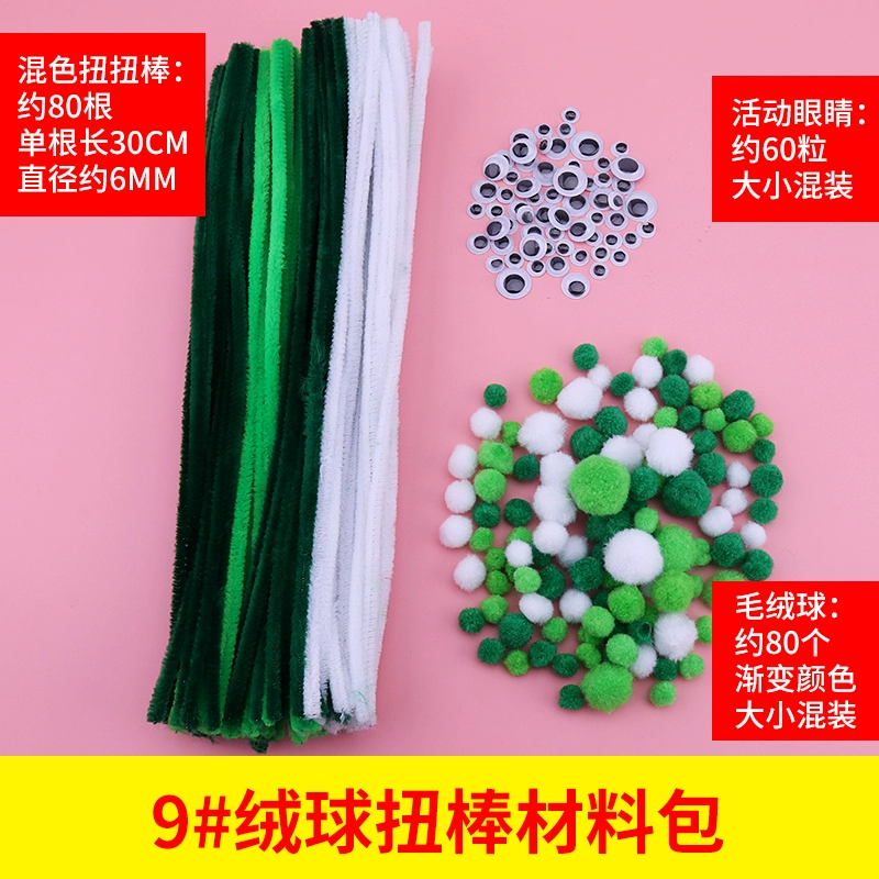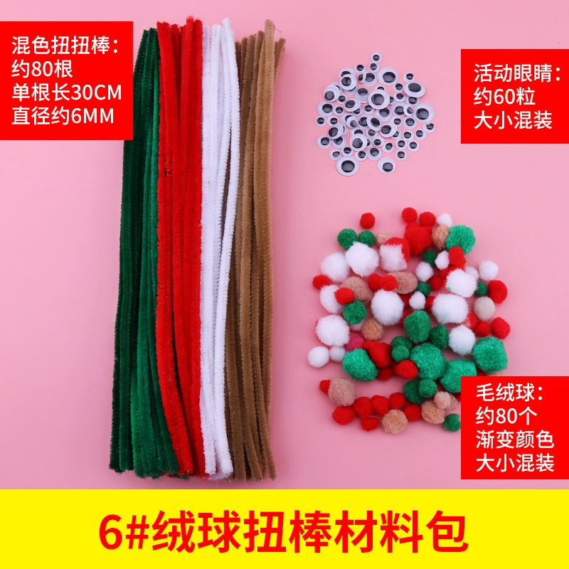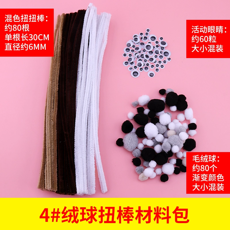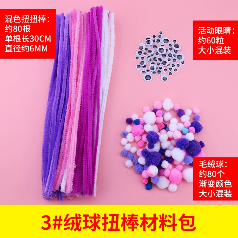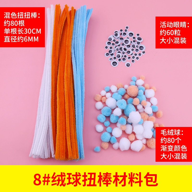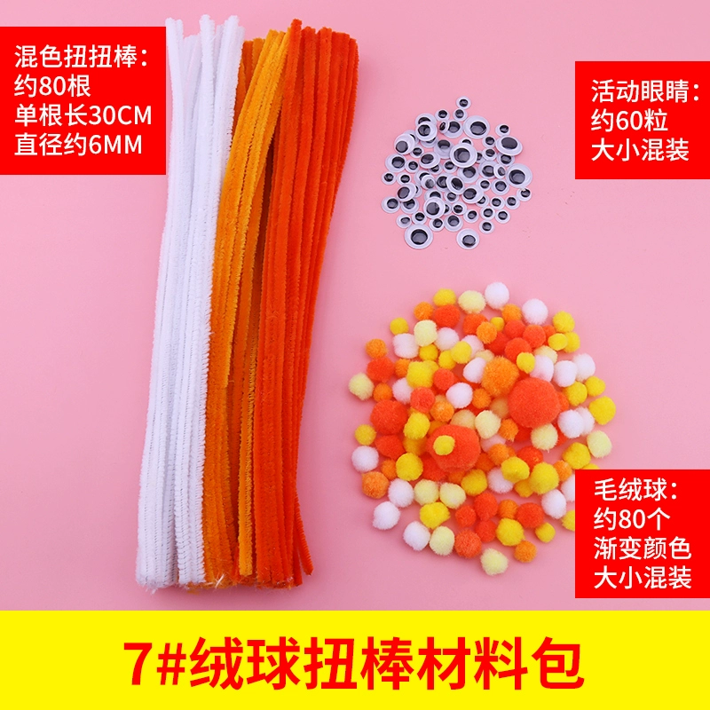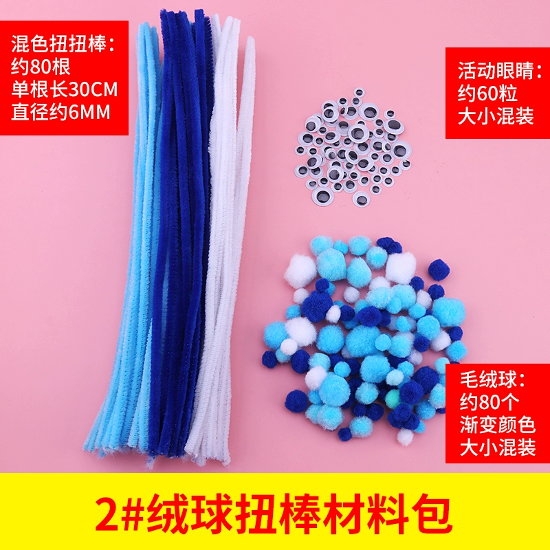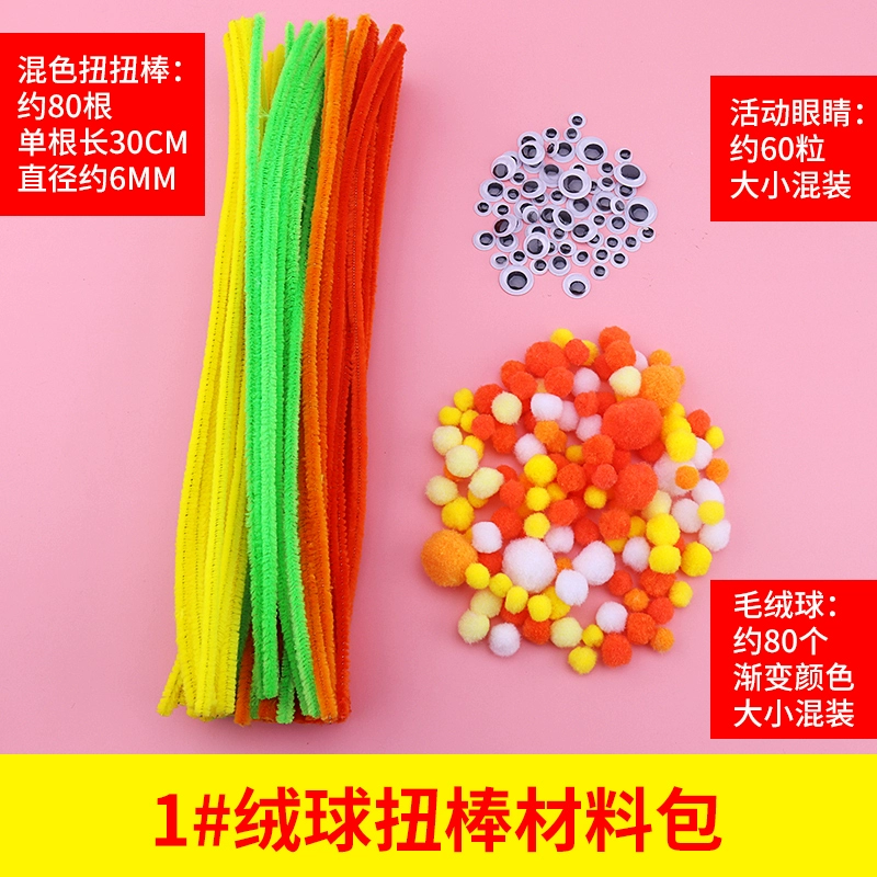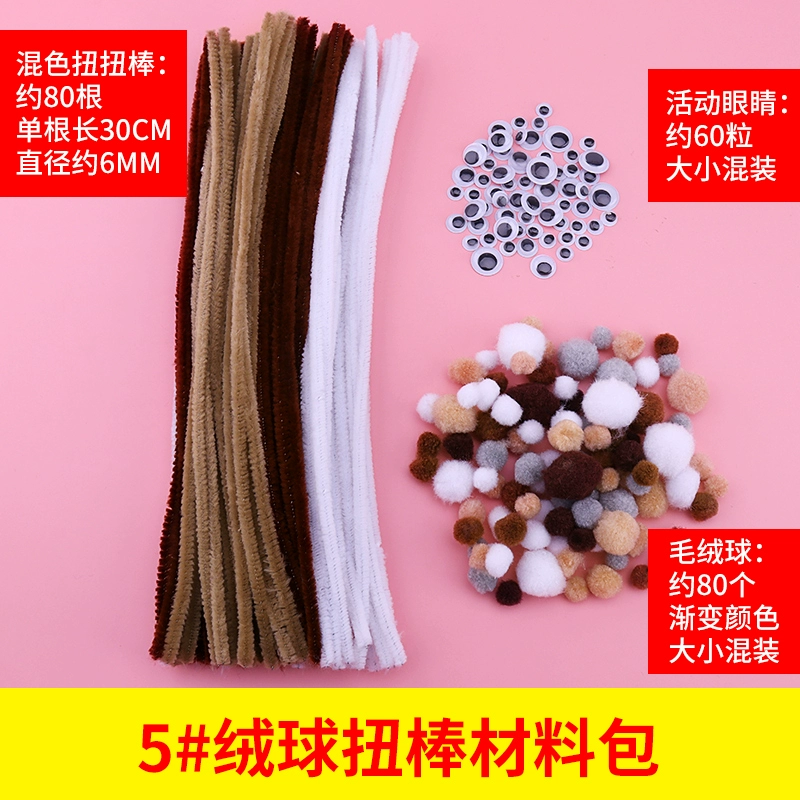 | nameOriginal | Hair root twist stick DIY children's handmade art material package Kindergarten colorful glitter top plush ball  |
