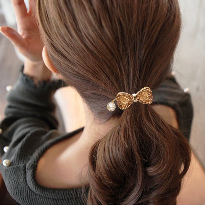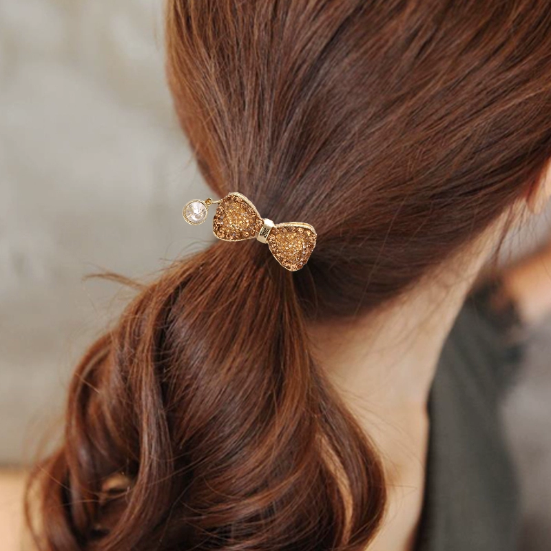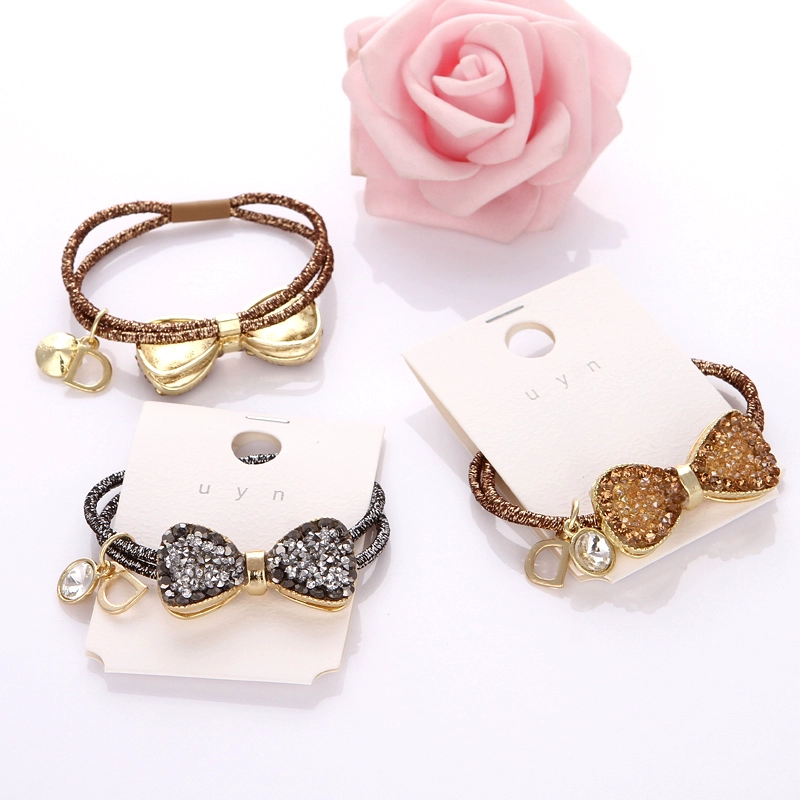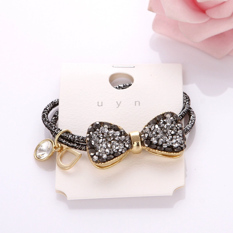 Hair rope crystal diamond bow hair tie hair tie female internet celebrity ponytail hair tie high-end leather case Korean version rubber band