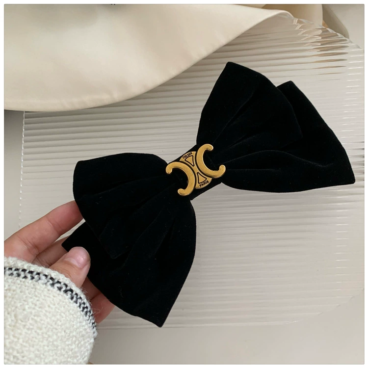 | nameOriginal | Hairpin horizontal clip Arc de Triomphe bow hairpin retro black flocking handmade hairpin top clip small fragrance hairpin |