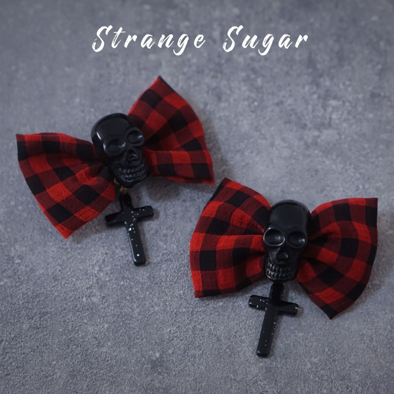 | nameOriginal | Hairpin skull cross subculture black and red ornaments |