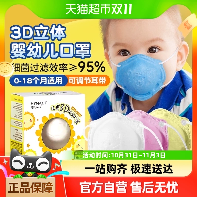 | nameOriginal | Haishi Hainuo 3D three-dimensional children's mask disposable breathable protective dustproof adjustable 0-18 months special |