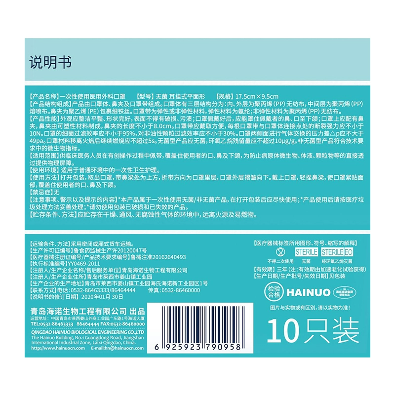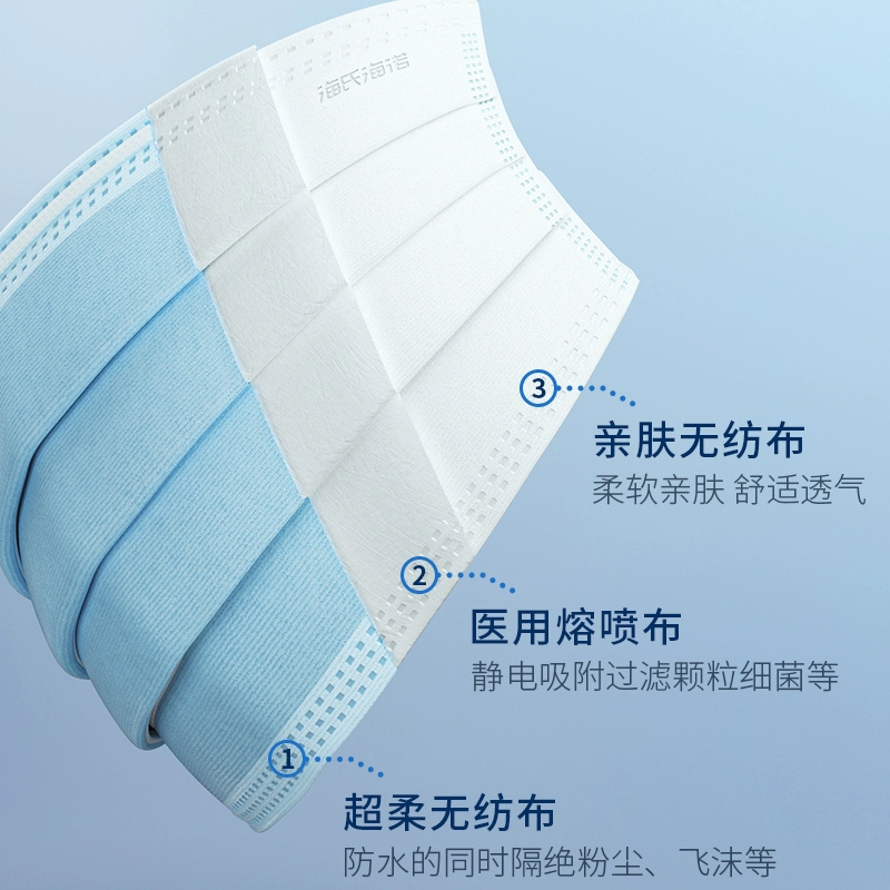| nameOriginal | Haishi Hainuo disposable medical surgical masks 200 pieces for adults three-layer medical masks protective summer breathable |