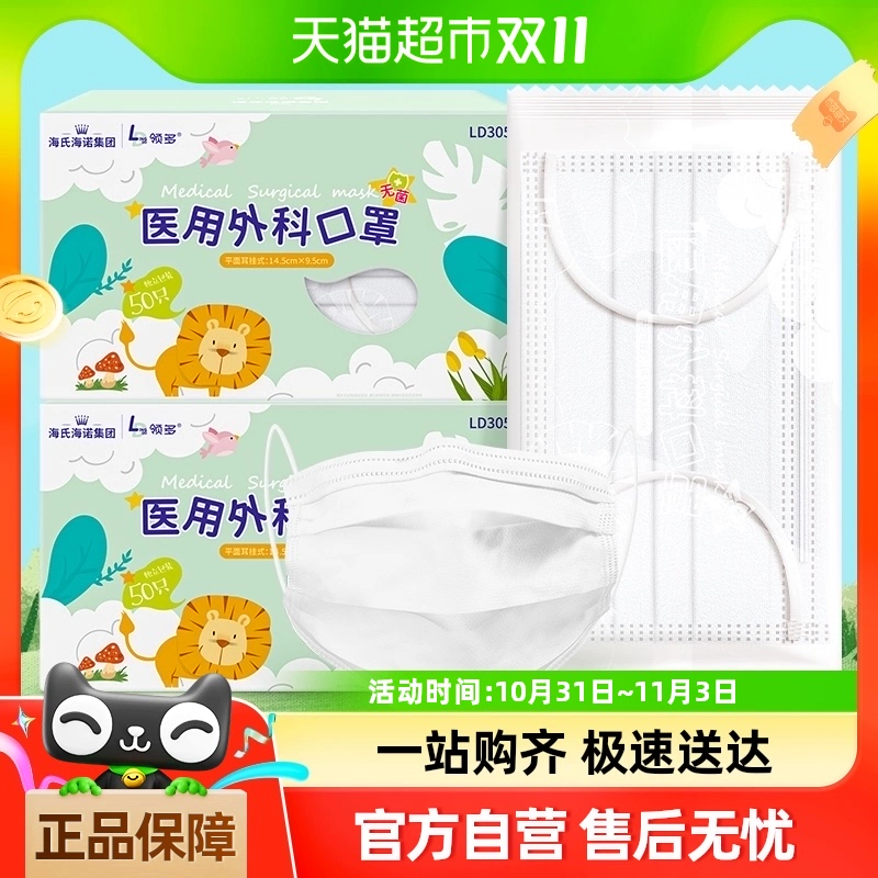 Haishi Hainuo medical surgical masks children's masks 50 pieces * 2 boxes of protective breathable single independent packaging
