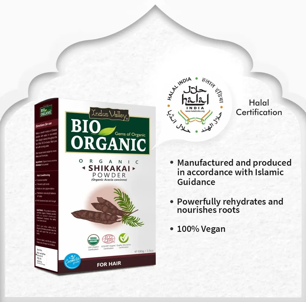 Indus Valley Bio Organic 100% Halal Certified Natural Herbal Shikakai Powder is a premium quality hair care product that is made from Acacia concinna, a natural herb that has been used for centuries in Ayurvedic medicine for its hair care benefits. This powder is specially formulated to provide nourishment to your hair and scalp, making it an ideal choice for those who want to maintain healthy and beautiful hair.