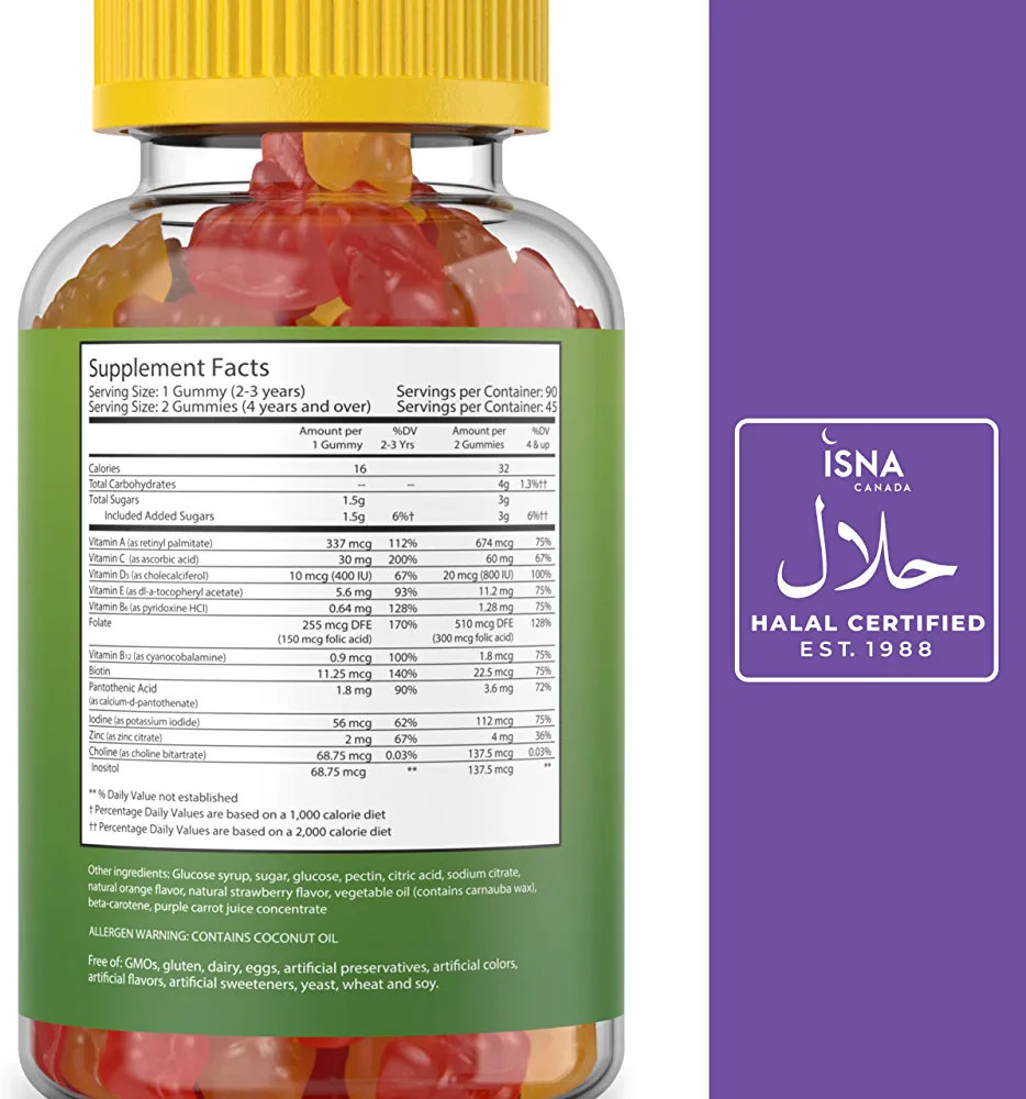 Introducing Noor Vitamins’ Kids Multivitamin Gummies – a reliable brand of halal vitamins that caters to the entire family’s health needs! Our gummies are certified halal by ISNA, ensuring that they meet the highest standards of purity and quality.
