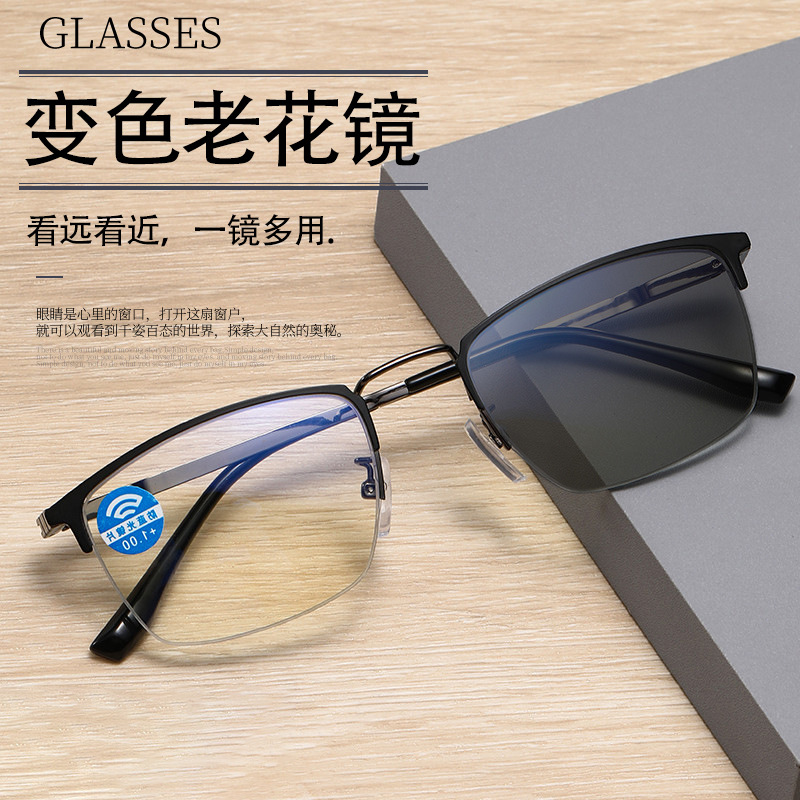 | nameOriginal | Half-frame photosensitive color-changing anti-blue light reading glasses men's automatic zoom progressive multi-focus dual-purpose reading glasses |