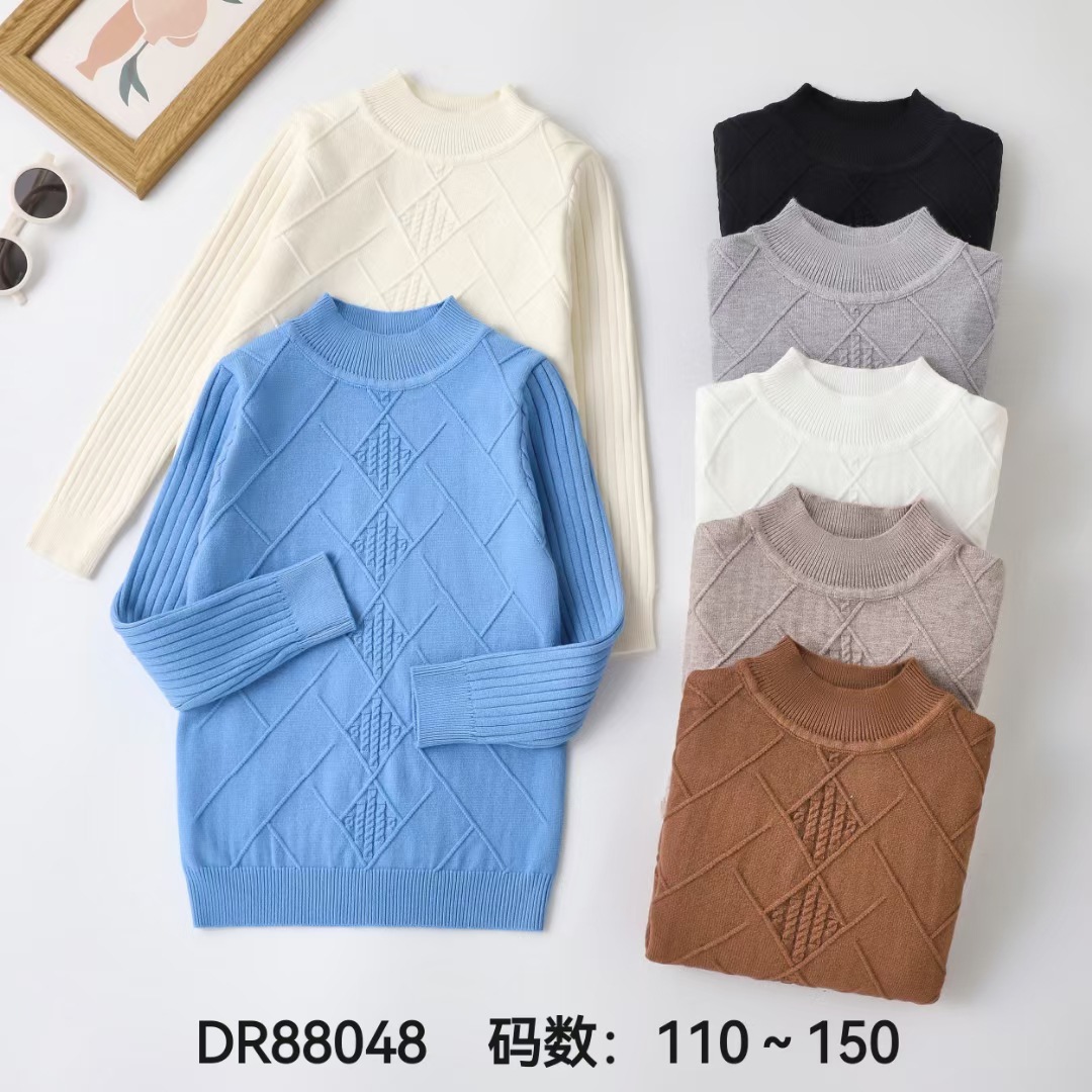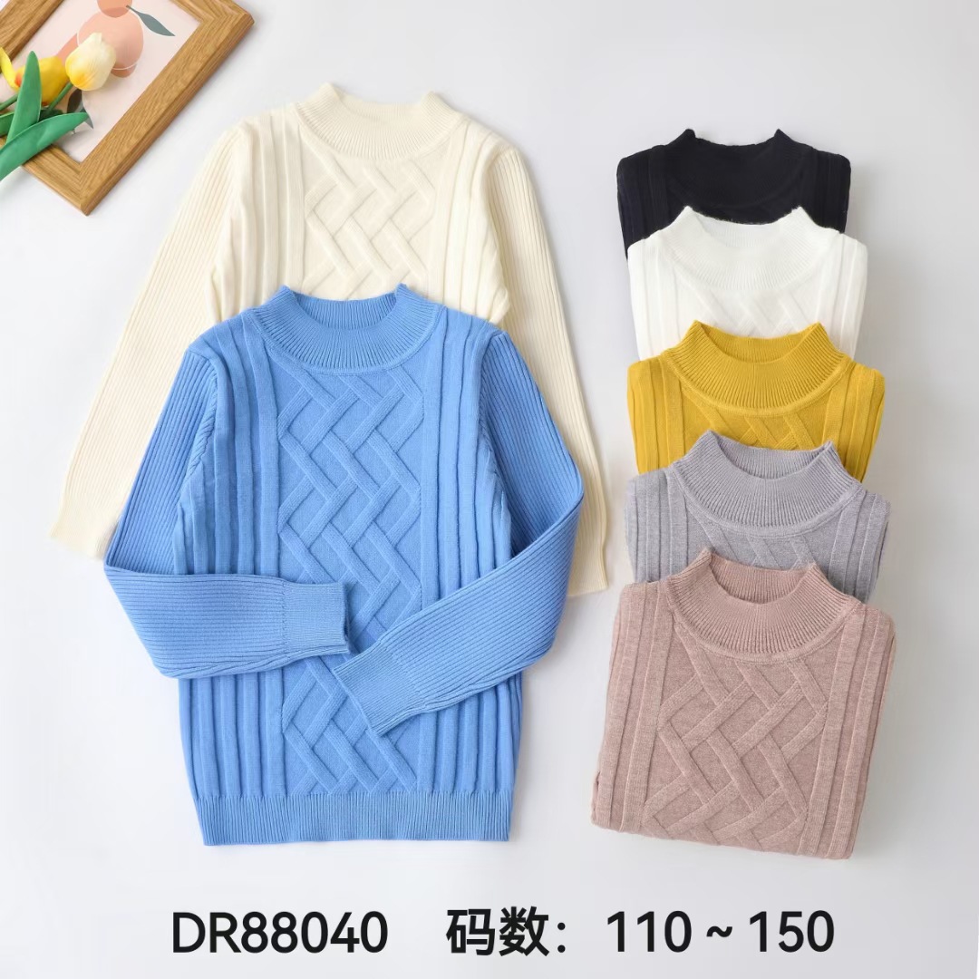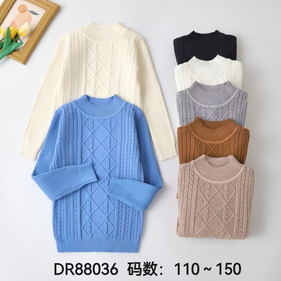 | nameOriginal | Half-high collar autumn and winter new boys and girls baby soft waxy top children's round neck solid color diamond twist flower sweater |