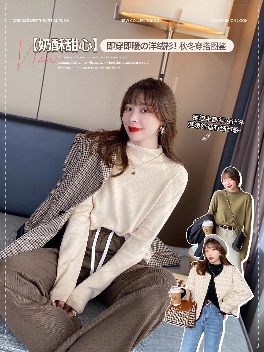 | nameOriginal | Half-high Collar Base Shirt Women's Autumn and Winter Inner Knitted Sweater 2023 New Style All-match Mid-collar Long-sleeved Top |