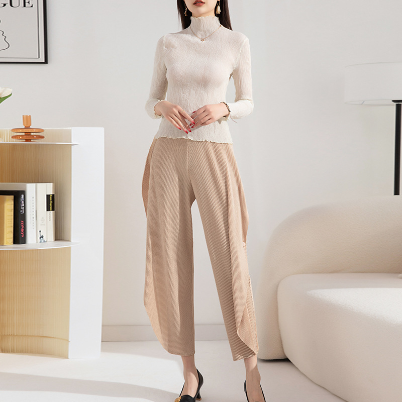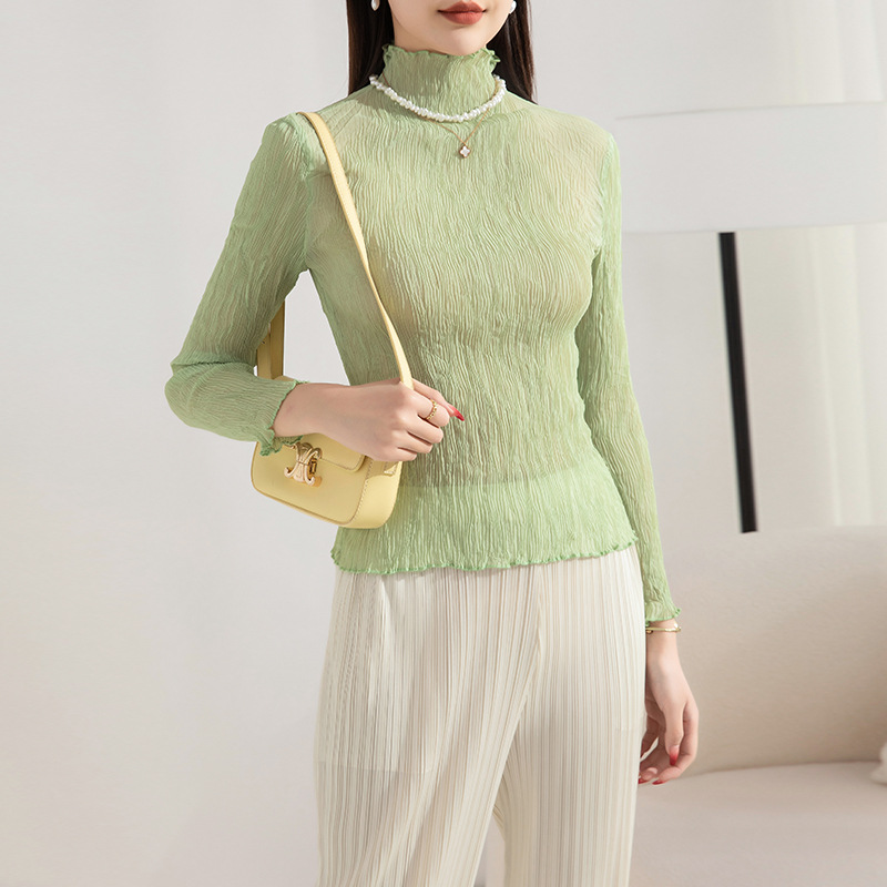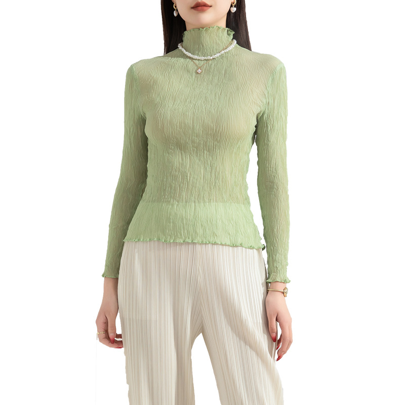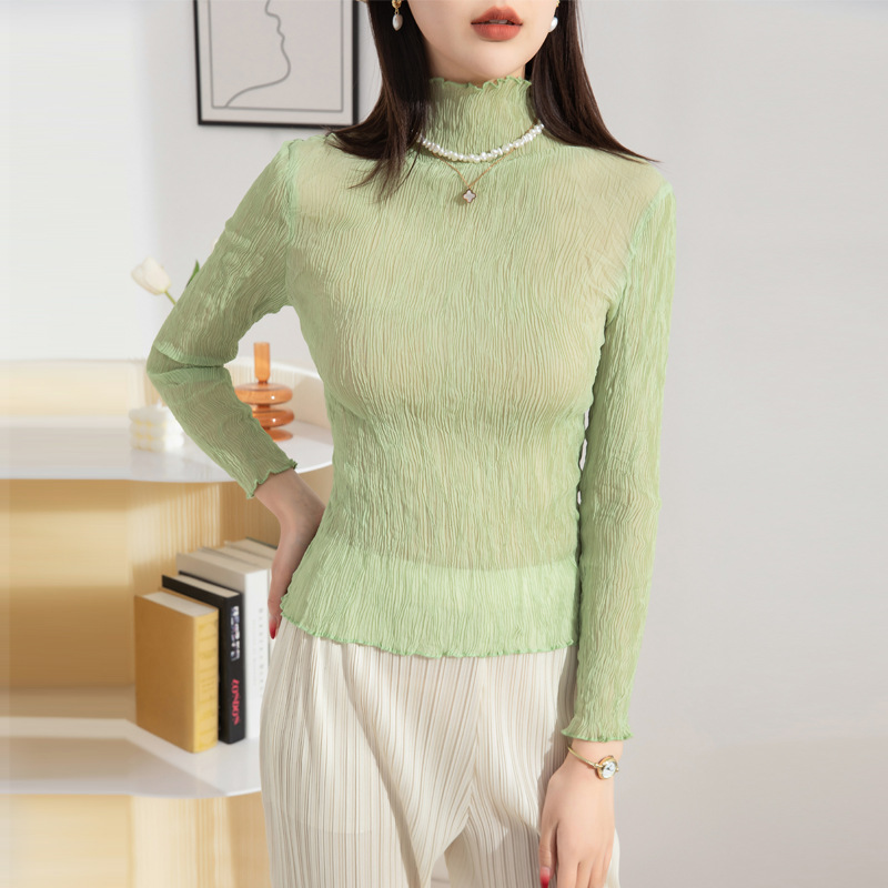| nameOriginal | Half-high Collar Base Shirt Women's Long-sleeved Spring and Autumn New Stretch Loose Slimming Twisted Pleated Styline Comfortable Inner Top |
