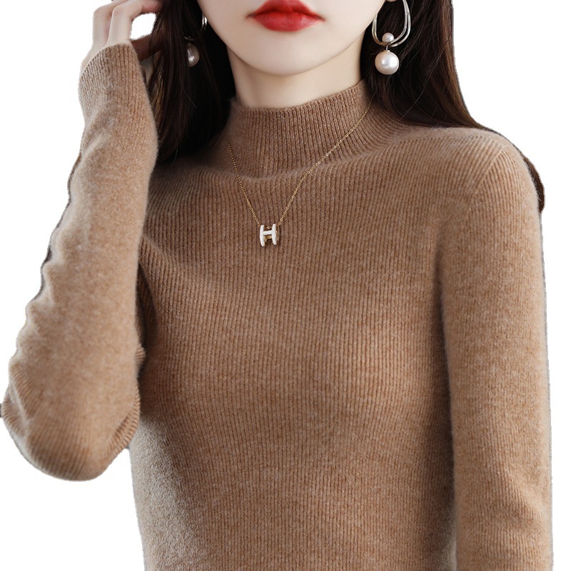 Half high collar solid color women’s bottoming shirt 2023 autumn and winter New tight sweater women’s short slim sweater wholesale