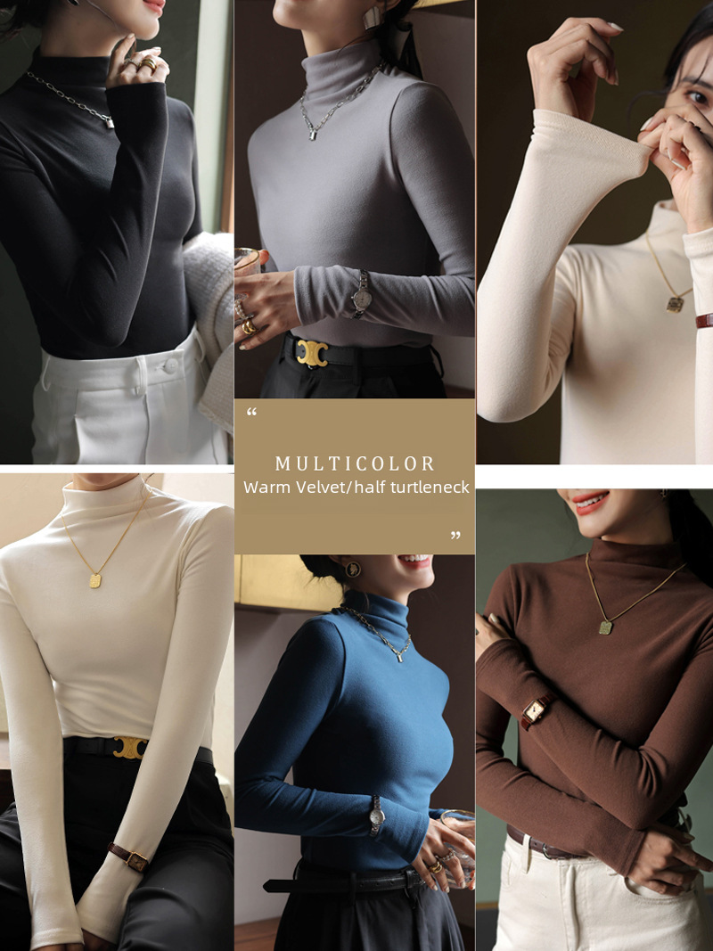 | nameOriginal | Half-high mid-collar double-sided velvet fleece-lined thick bottoming shirt fashionable warm women's spring, autumn and winter western style inner wear |