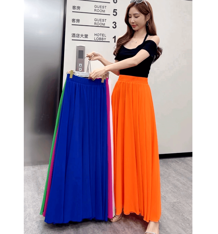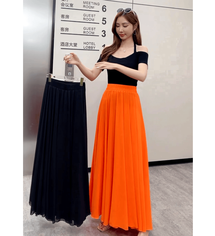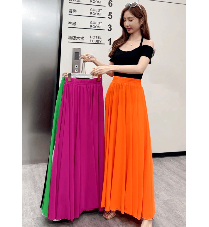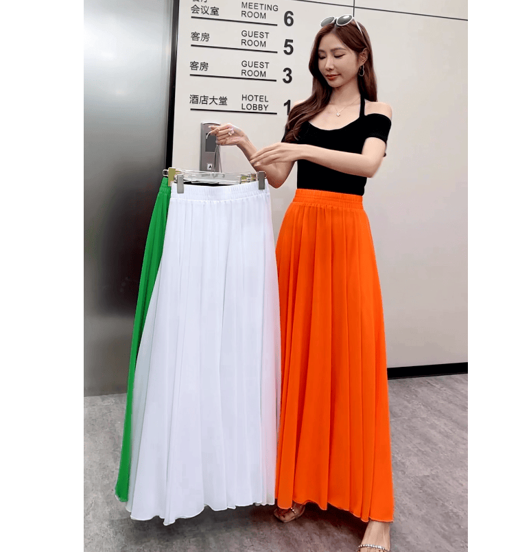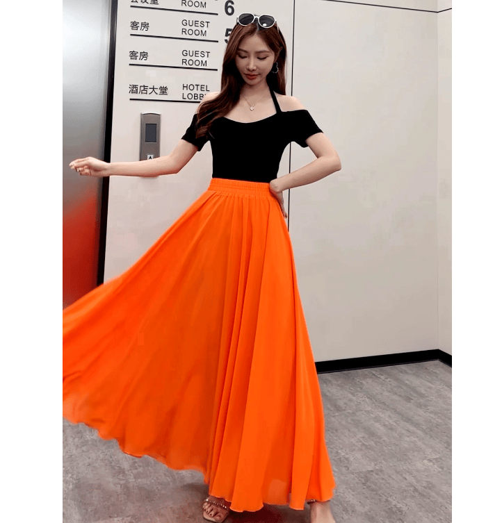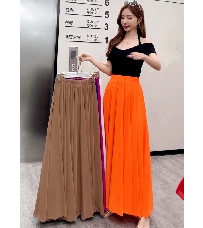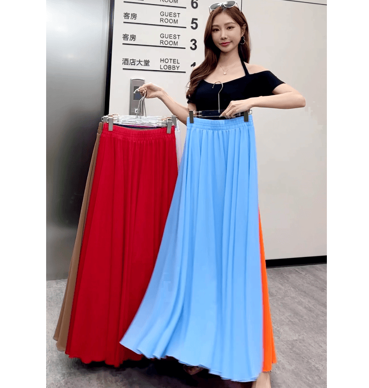 Half-length maxi skirt to ankle chiffon high waist slimming wide swing beach skirt umbrella skirt temperament fairy skirt LQ01