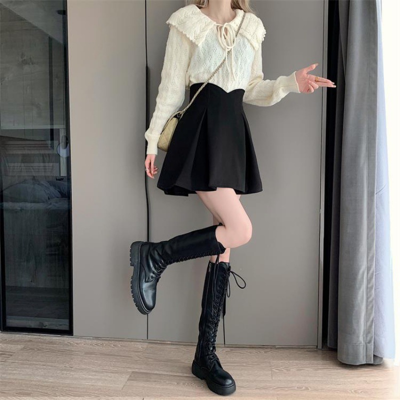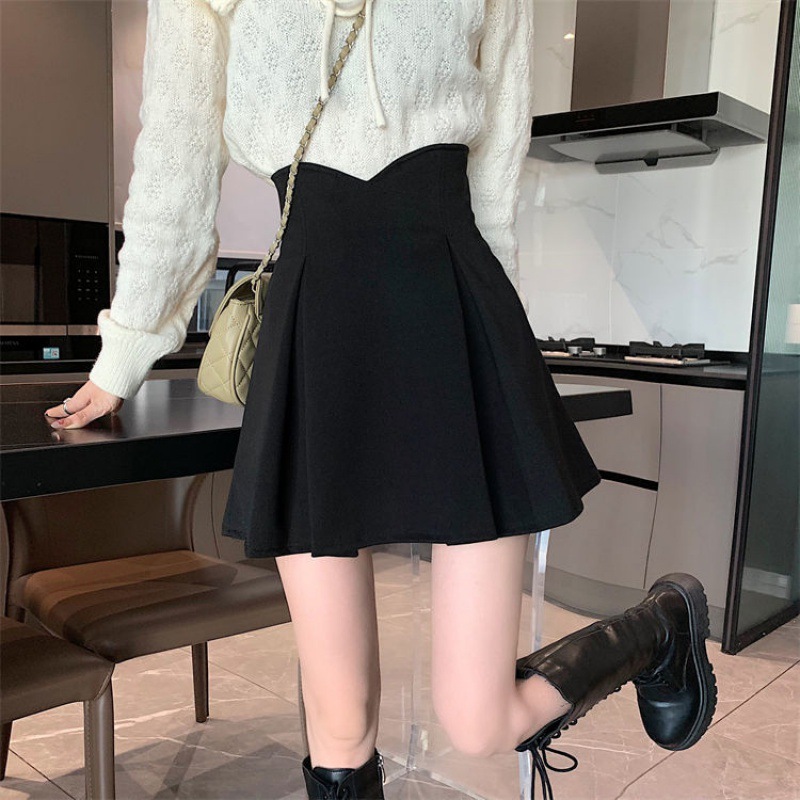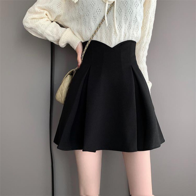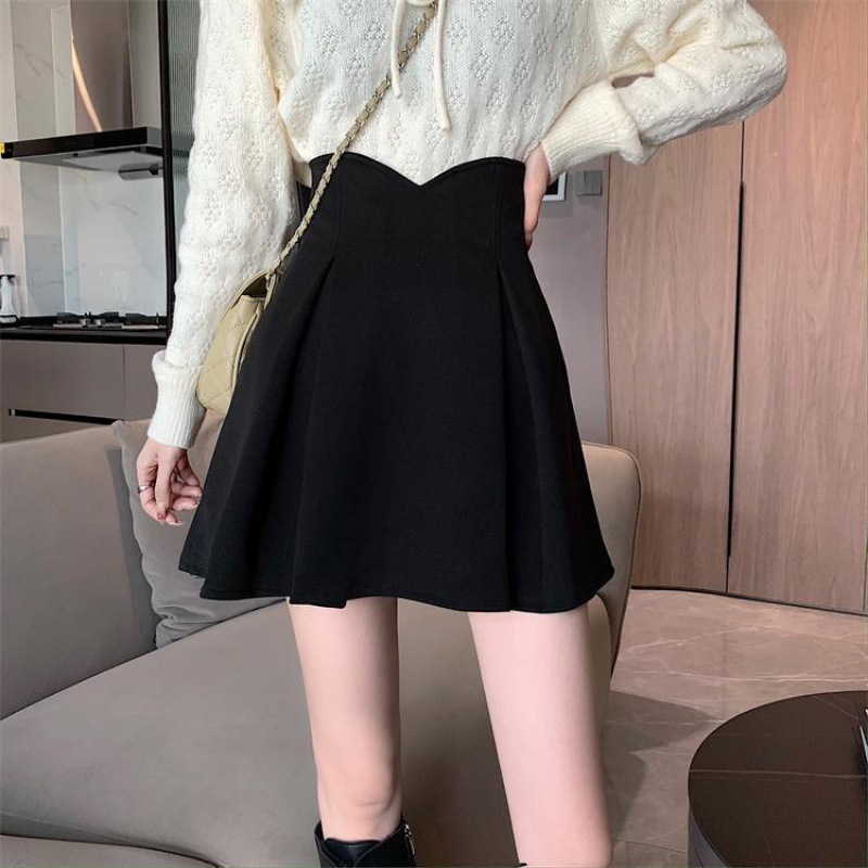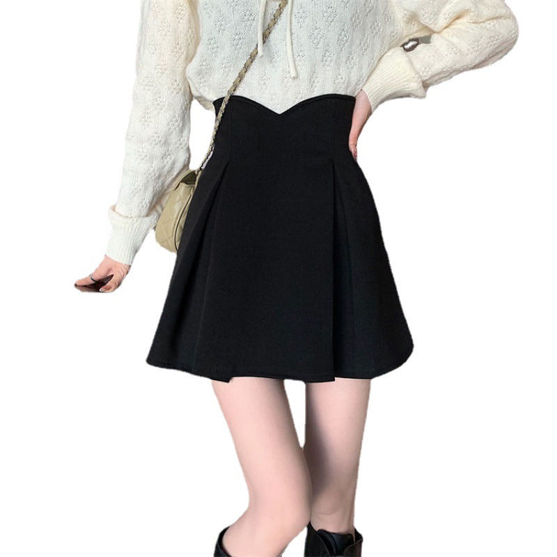 Half-length skirt spring and summer New plus size fat pleated high waist black slimming anti-exposure word hip skirt