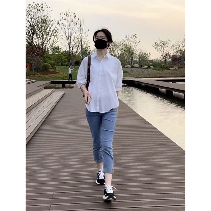 | nameOriginal | Half Sleeve Simple Korean Style Shirt Women's 2024 New Korean Style All-match Solid Color Western Style Top Women's Loose White |
