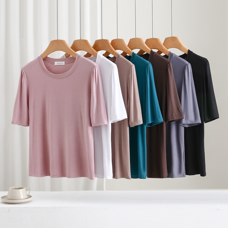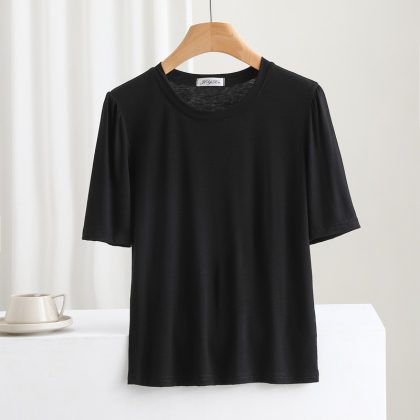 Half Sleeve Spring and Summer Inner Middle Sleeve 2024 New T-shirt Modal Black Base Round Neck Solid Color Half Sleeve Top