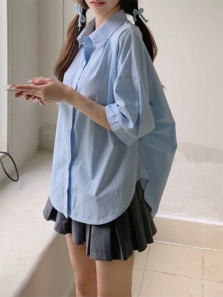 | nameOriginal | Half-sleeved, loose, slimming, irregular shirt that covers fat girls |