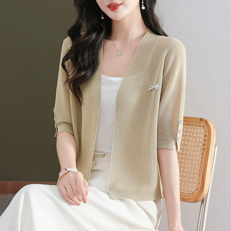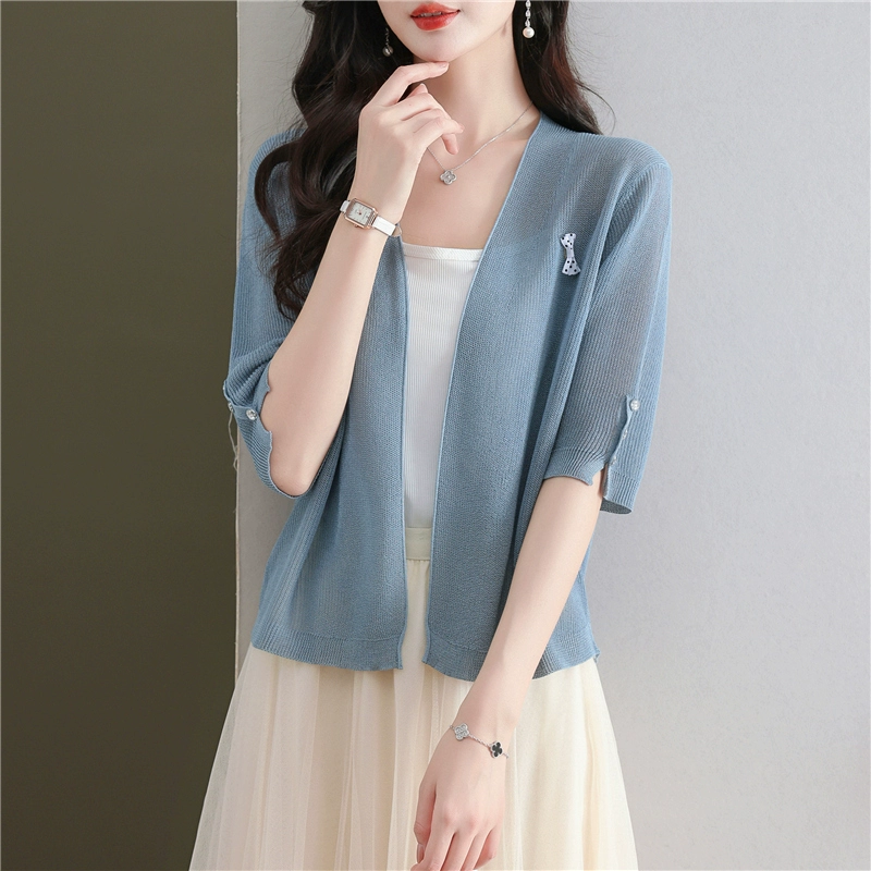 | nameOriginal | Half-sleeved V-neck ice silk short jacket sweater |