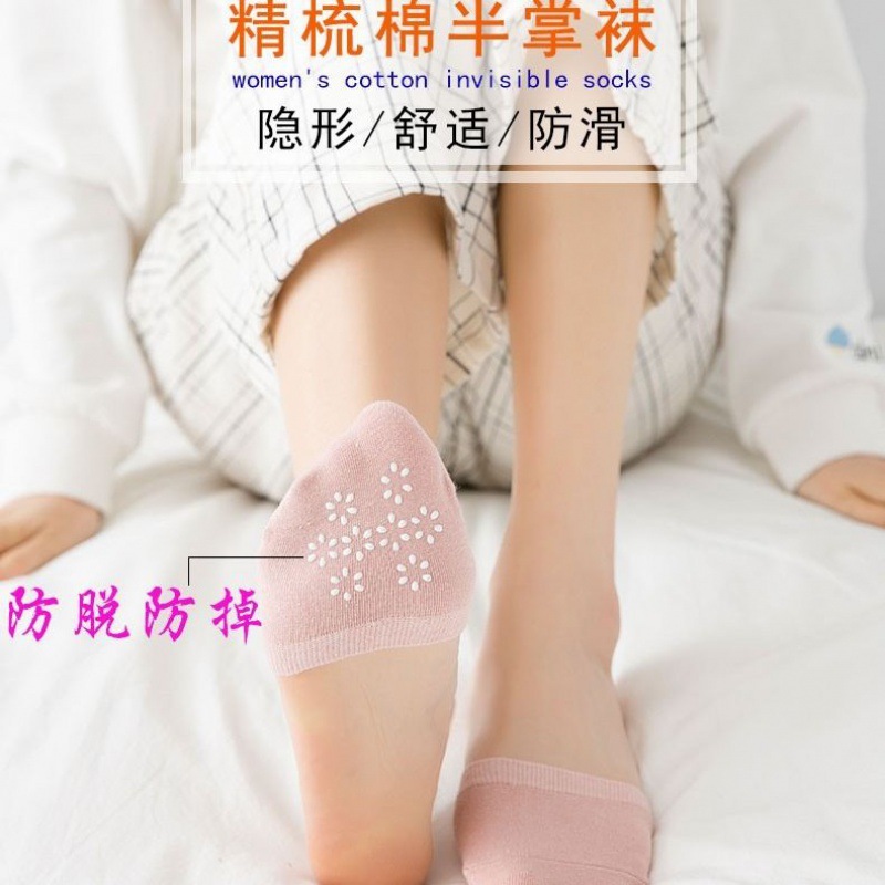 Half socks women's forefoot socks solid color cotton socks thin invisible non-slip forefoot pad summer slippers socks half palm socks