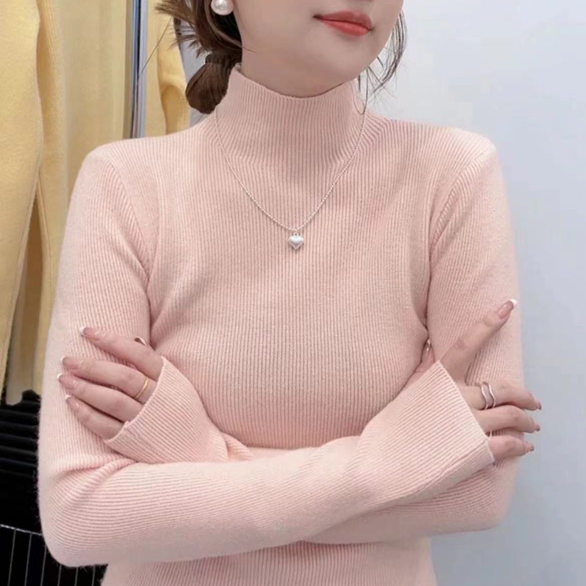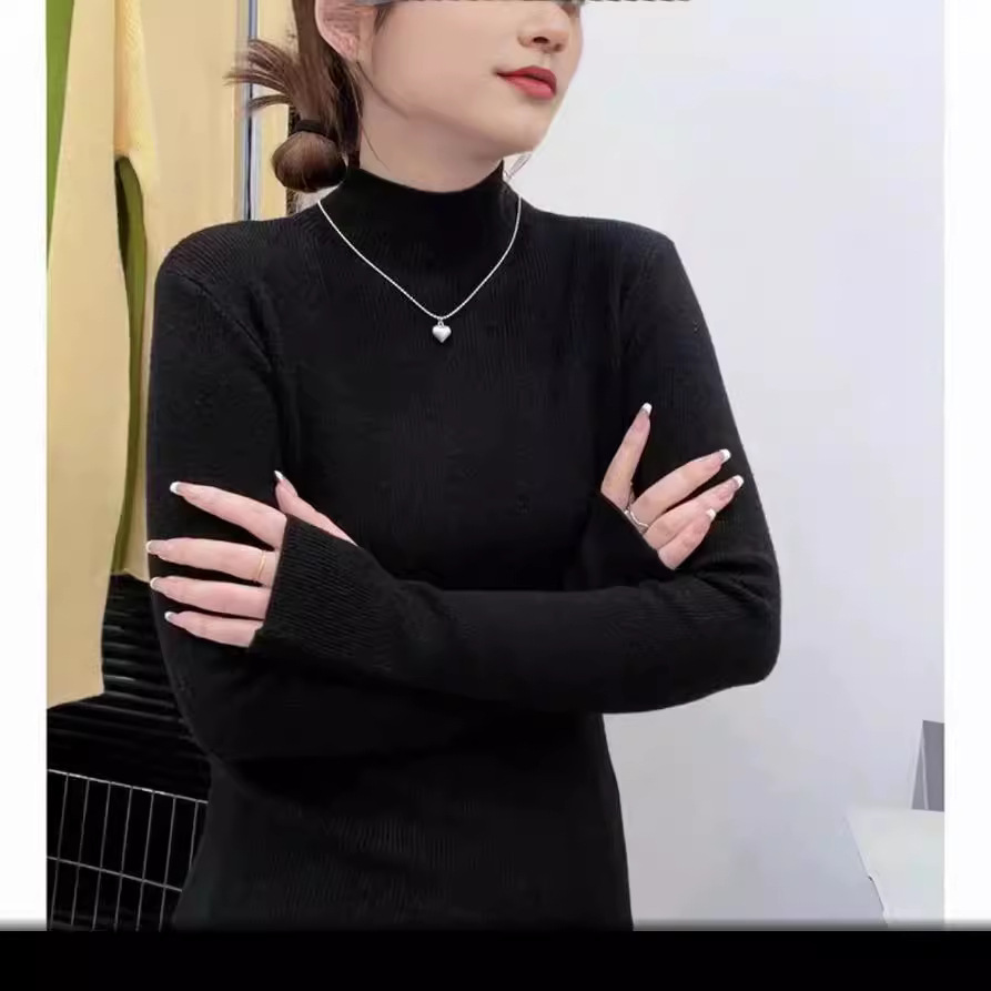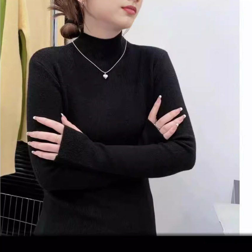 Half turtle neck sweater 2024 new autumn and winter sweater women Joker soft waxy fashion foreign style high sense coat-MY