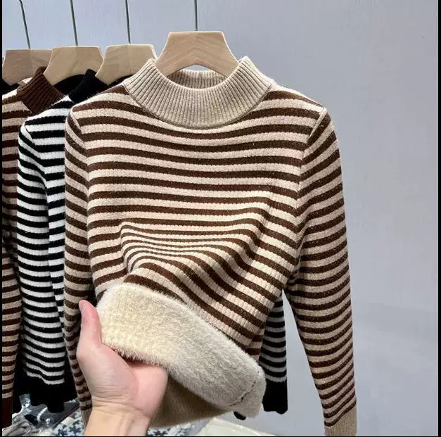 Half turtleneck all-in-one velvet autumn and winter thickened warm sweater
