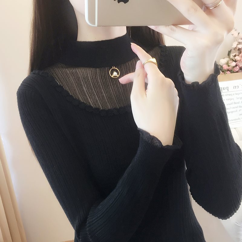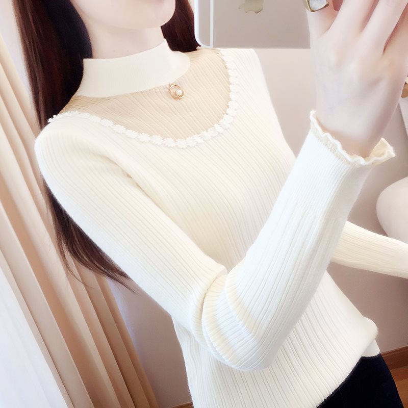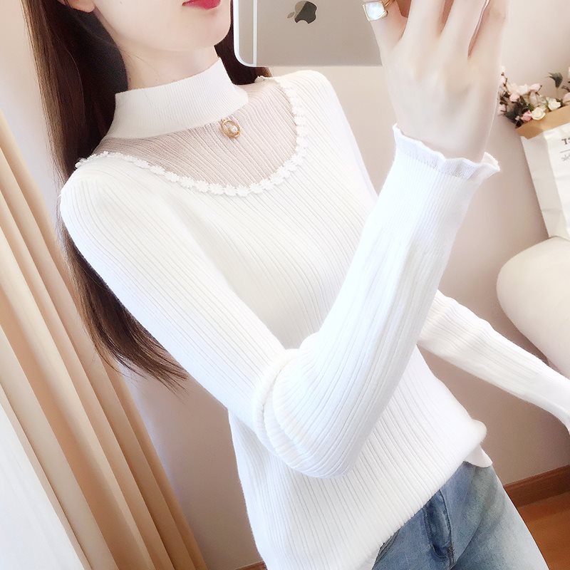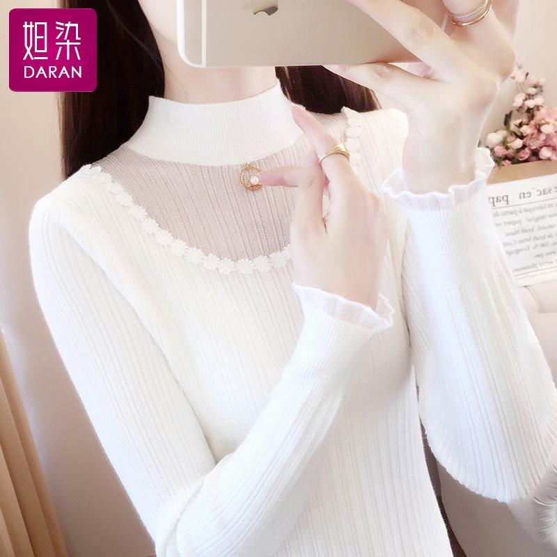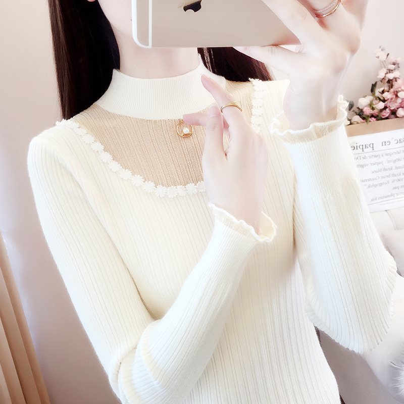 | nameOriginal | Half turtleneck lace sweater base shirt with 2024 new women's early spring western style top spring and autumn white sweater |