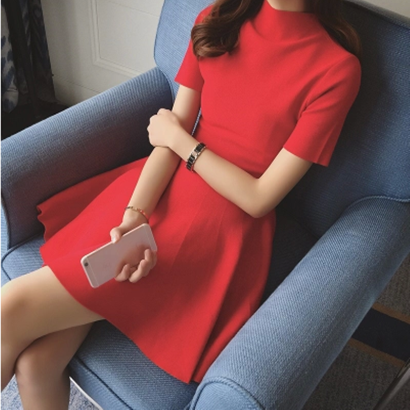 | nameOriginal | Half turtleneck petite retro slimming knitted dress |