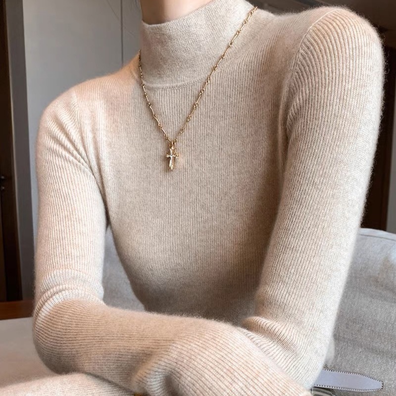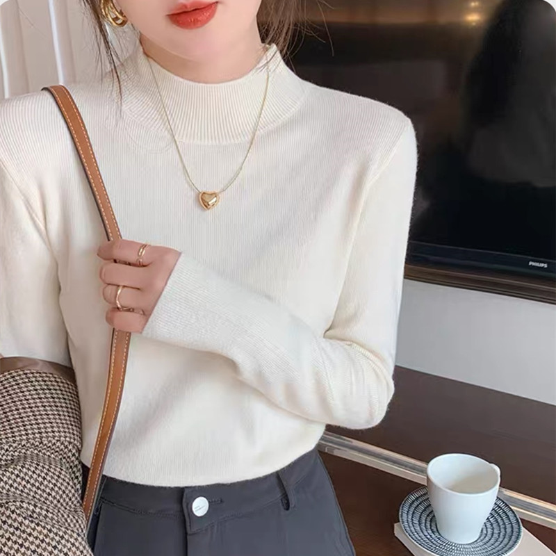 Half turtleneck sweater bottoming shirt Women’s Western style inner wear autumn and winter 2024 new white sweater slim mid collar top