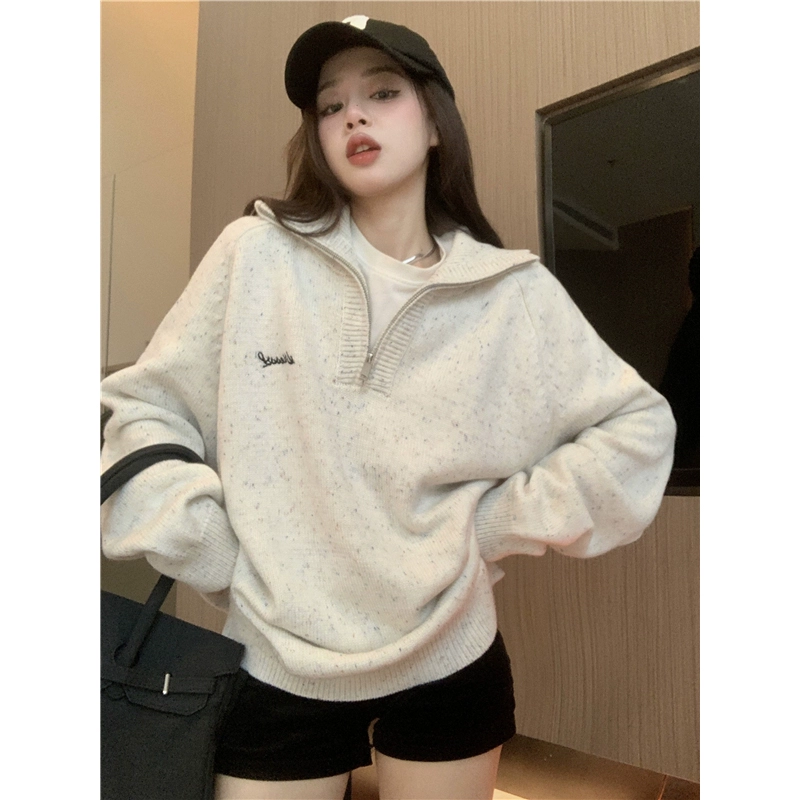 | nameOriginal | Half-Zip White Lazy Style Women's Pullover Sweater |