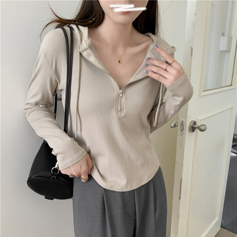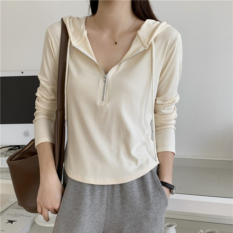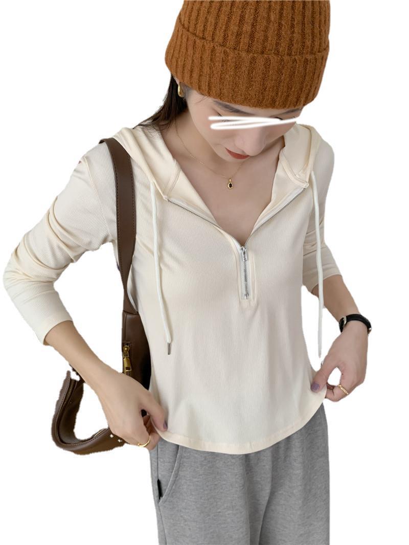 | nameOriginal | Half-Zipper Hooded Base Shirt Shoulder Irregular Long-Sleeved T-Shirt Women's Autumn Fat Girl Slimming Casual Hooded Sweater |
