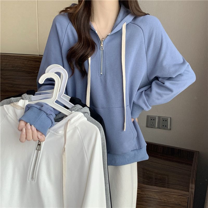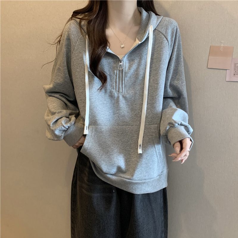 | nameOriginal | Half-zipper hooded sweater women's spring and autumn extra large size 300kg thin loose long sleeve jacket age-reducing coat tide |