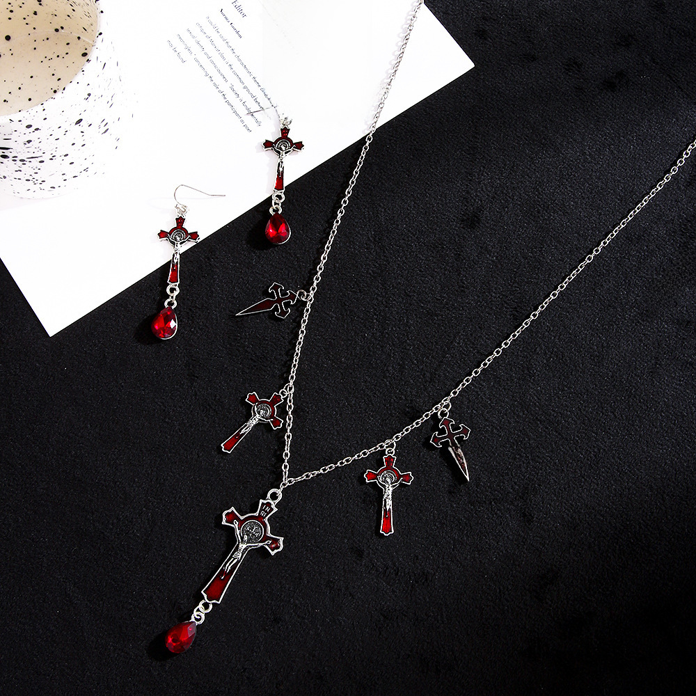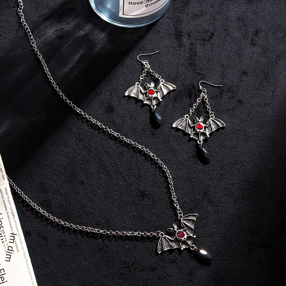 Halloween bat jewelry suit Gothic retro exaggerated black bat necklace earrings suit holiday gift