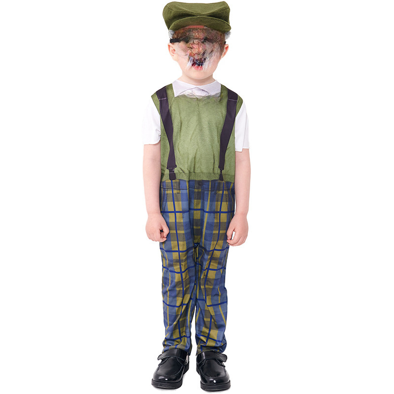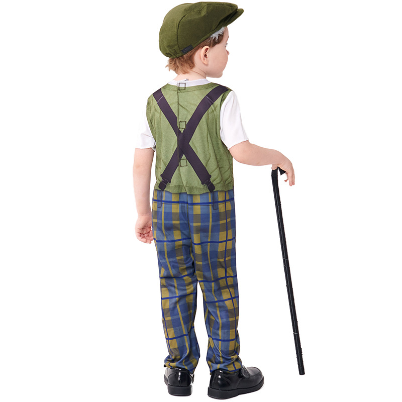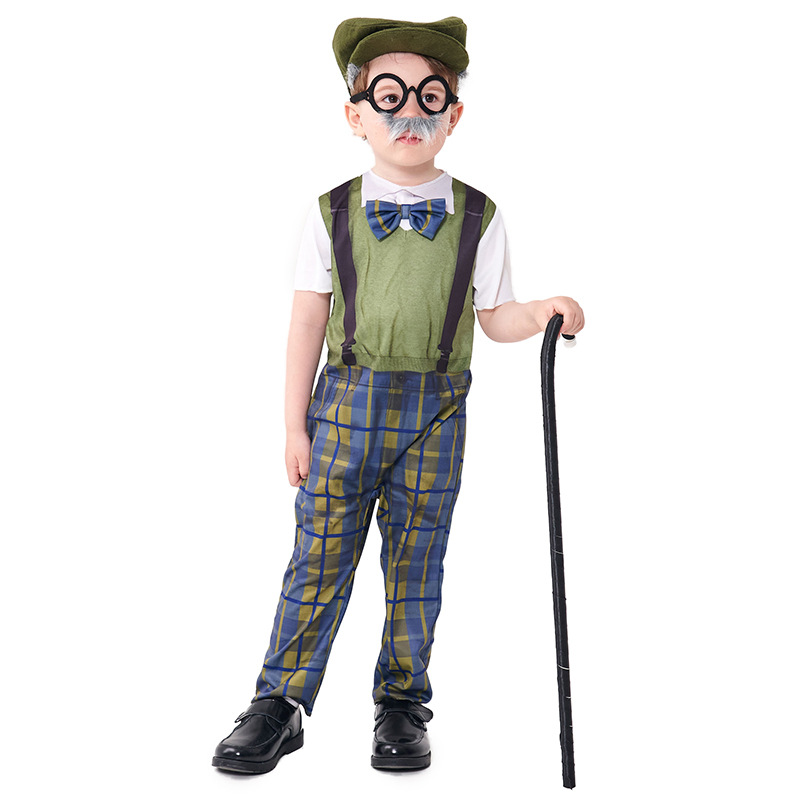 Halloween Performance Costume Children's Cosplay Grandpa Jumpsuit with Hat and Glasses Set Plaid Pants