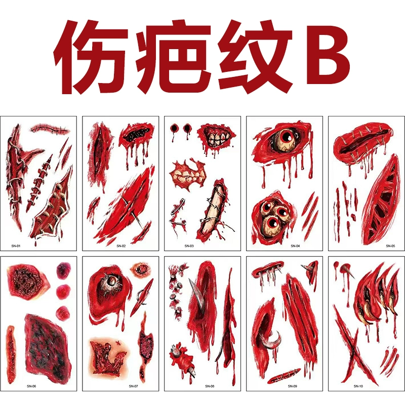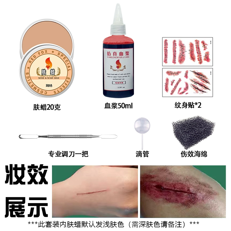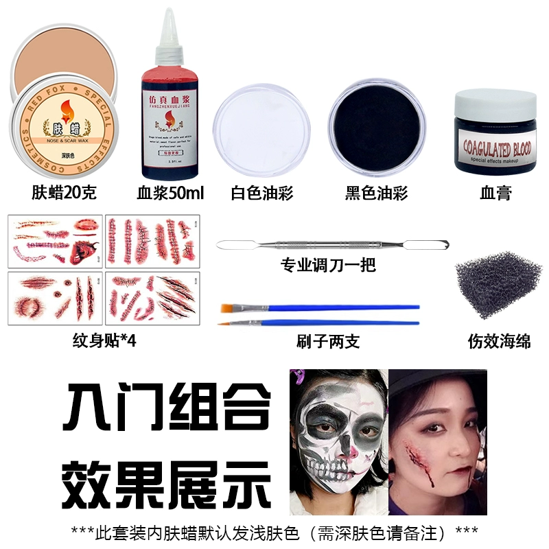| nameOriginal | Halloween special effects makeup for facial wounds, scars, skin wax filling, fake plasma pad nose set, bruises, clown makeup |