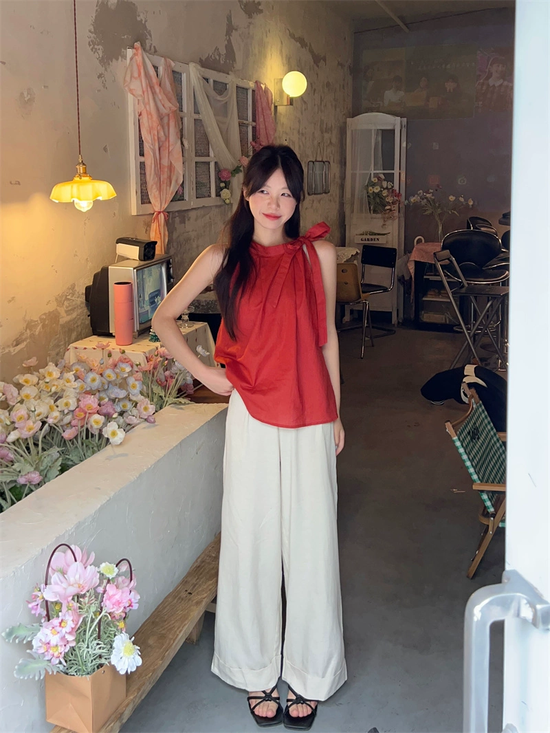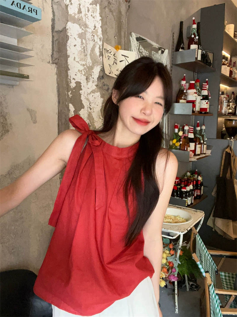 | nameOriginal | Halter neck straps loose chic sleeveless top with bow |