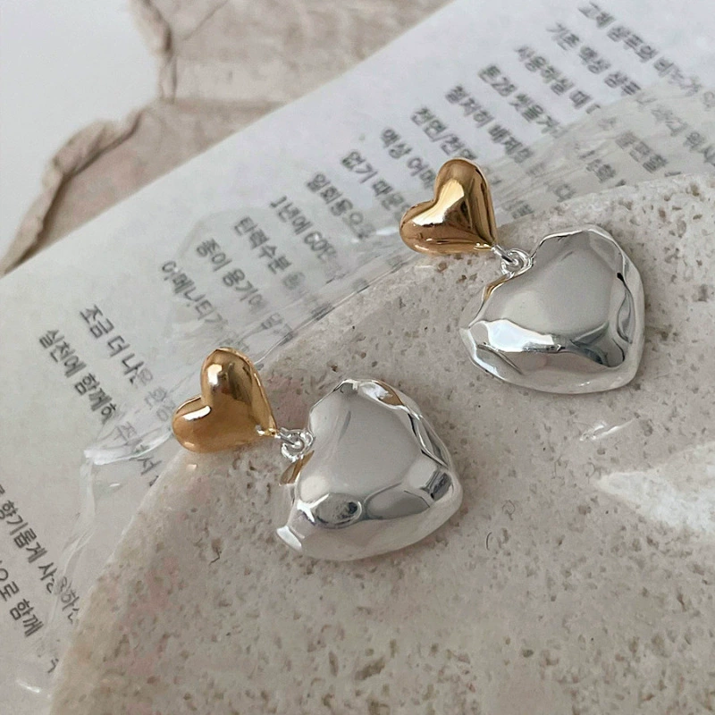 | nameOriginal | Hammer texture love earrings for women, simple fashion, contrasting color temperament, S925 silver needle earrings, Korean style personalized earrings trend |