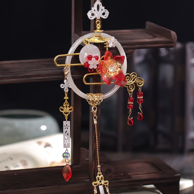| nameOriginal | Han clothing forbidden step pressure group pendant long tassel waist pendant ancient style jewelry ancient costume waist pendant ring jade red flower pendant |