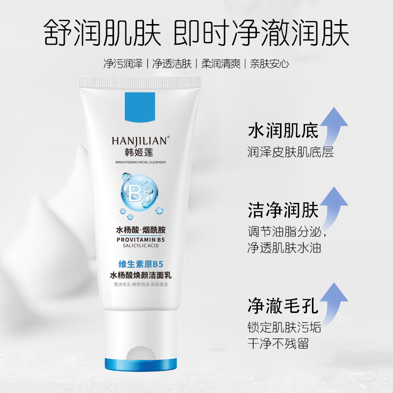 | nameOriginal | Han Jilian Vitamin B5 Salicylic Acid Brightening Facial Cleanser Hydrating Moisturizing Non-tight Deep Cleansing Facial Cleanser |