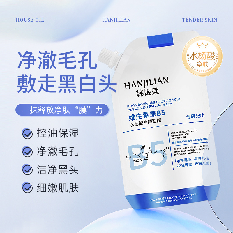 | nameOriginal | Han Jilian Vitamin B5 Salicylic Acid Cleansing Mask Deep Hydrating Refreshing Oil Control Vitamin Moisturizing Mask |