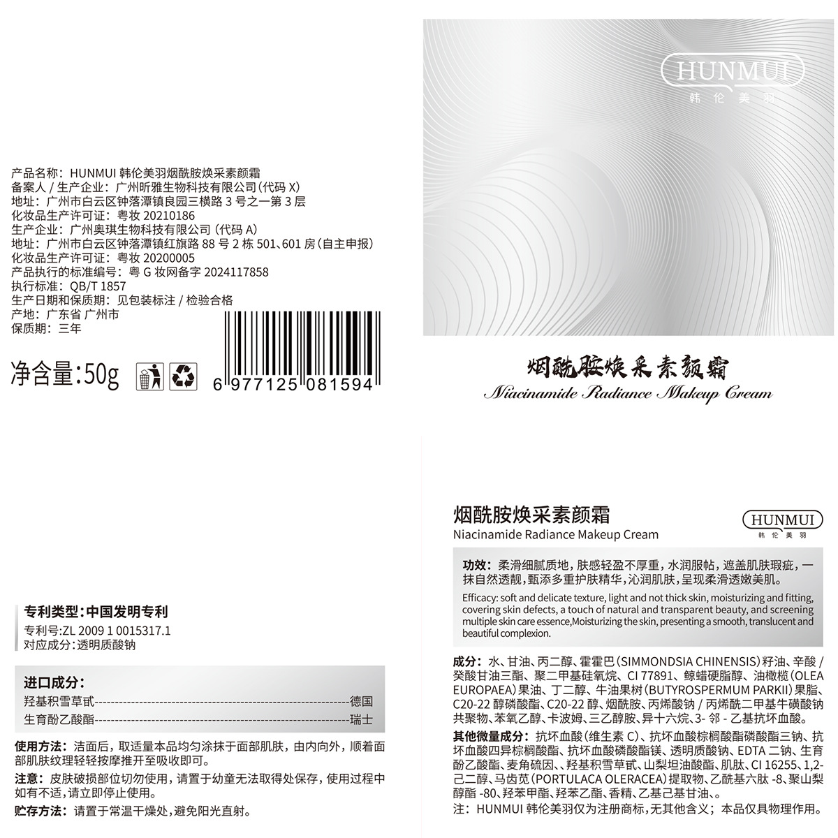 | nameOriginal | Han Lun Meiyu Niacinamide Rejuvenation Plain Cream Brightens Skin Color Lazy Naked Makeup Naturally White Waterproof Sweat Cream |