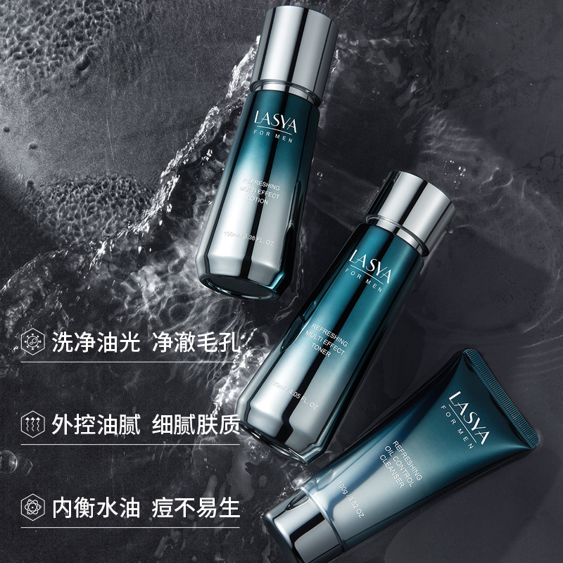 Han Meisu Men's Net Cool Oil Control Multi-effect Three-piece Set Hydrating Moisturizing Oil Control Water Cream Skin Care suit genuine goods