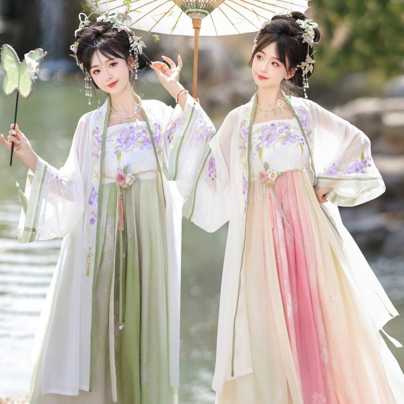 | nameOriginal | Han Qianlu [Peony] Song-made Hanfu Female Han Element Pink Green Sling dress Daily Embroidery Long Shirt Summer |