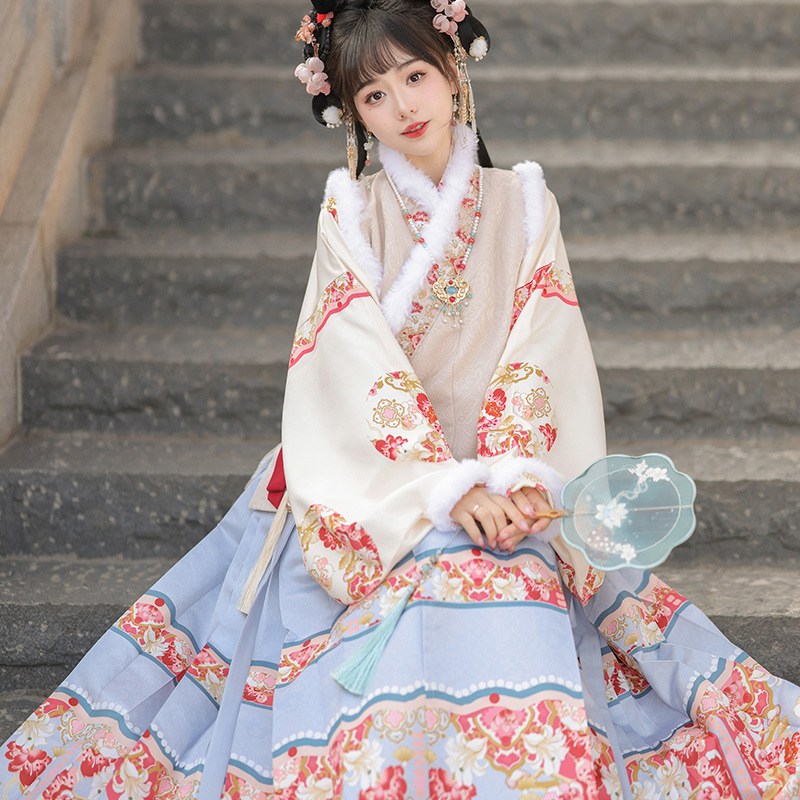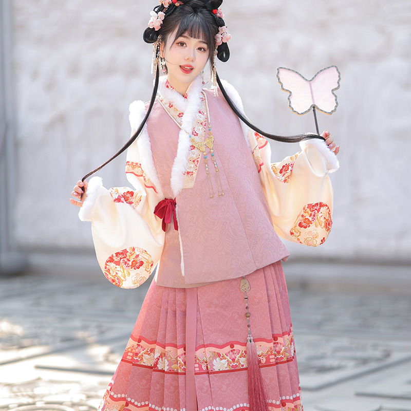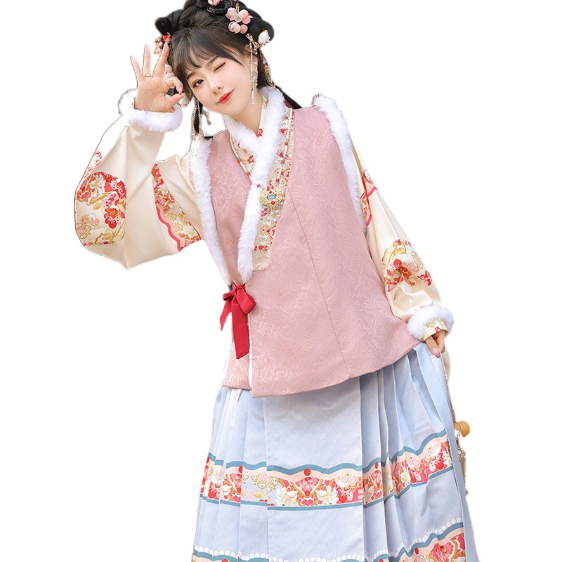 | nameOriginal | Han Ting Ji Original (Red Plum stepping snow) Ming-made Chinese clothing women's cross collar embroidered fleece-lined-match vest dress autumn and winter |