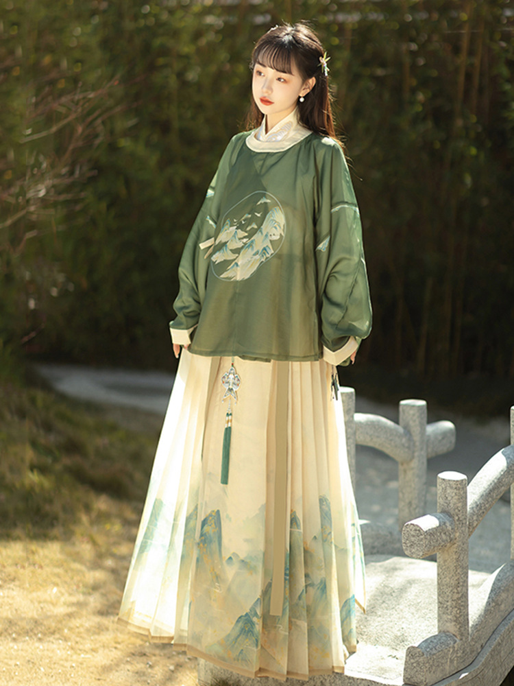 Han Yu Kui Han Yu Kui original Chinese clothing female [Qianli Jiangshan] Ming-made crew neck robe horse face skirt printed fresh daily spring summer style