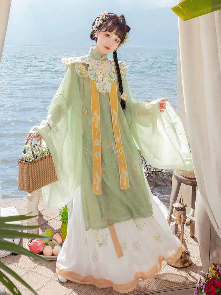 | nameOriginal | Han Yu Kui Han Yu Kui original Hanfu female [Qing Luo] Ming made cloud shoulder large sleeve slanting lapel collar pleated skirt printed spring and summer genuine |
