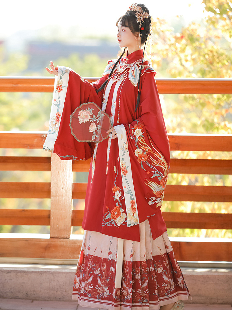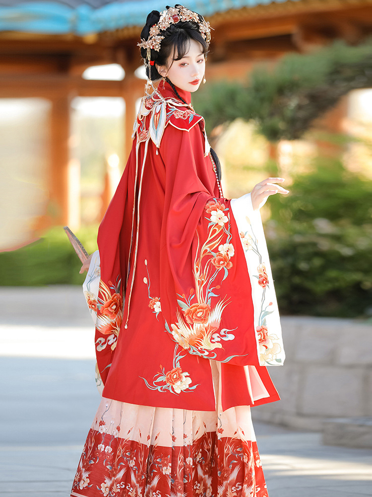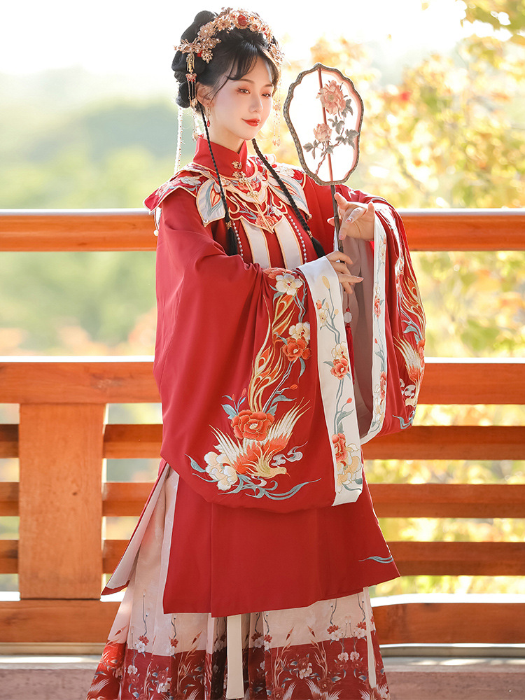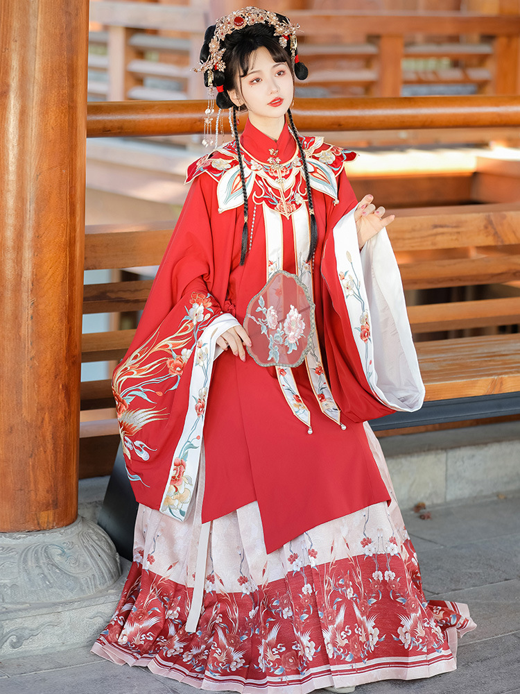 | nameOriginal | Han Yu Kui Ming Hanfu Women's New Original Fengyu Jinghong Spring Cloud Shoulder Horse Face Dress Set Red Wedding Dress Ancient Costume |