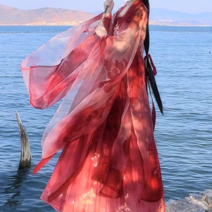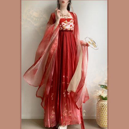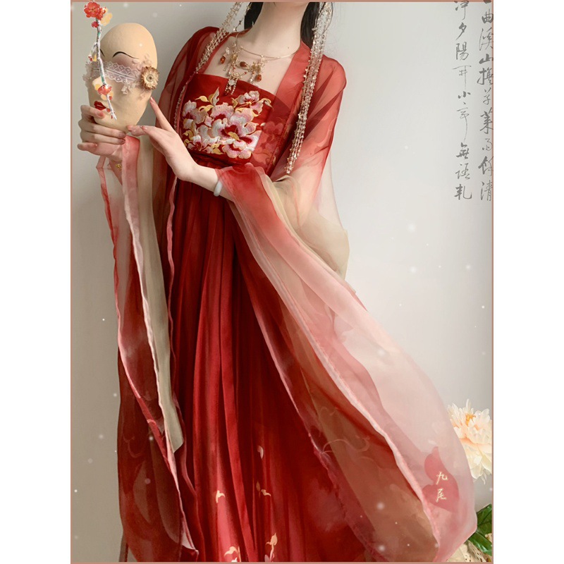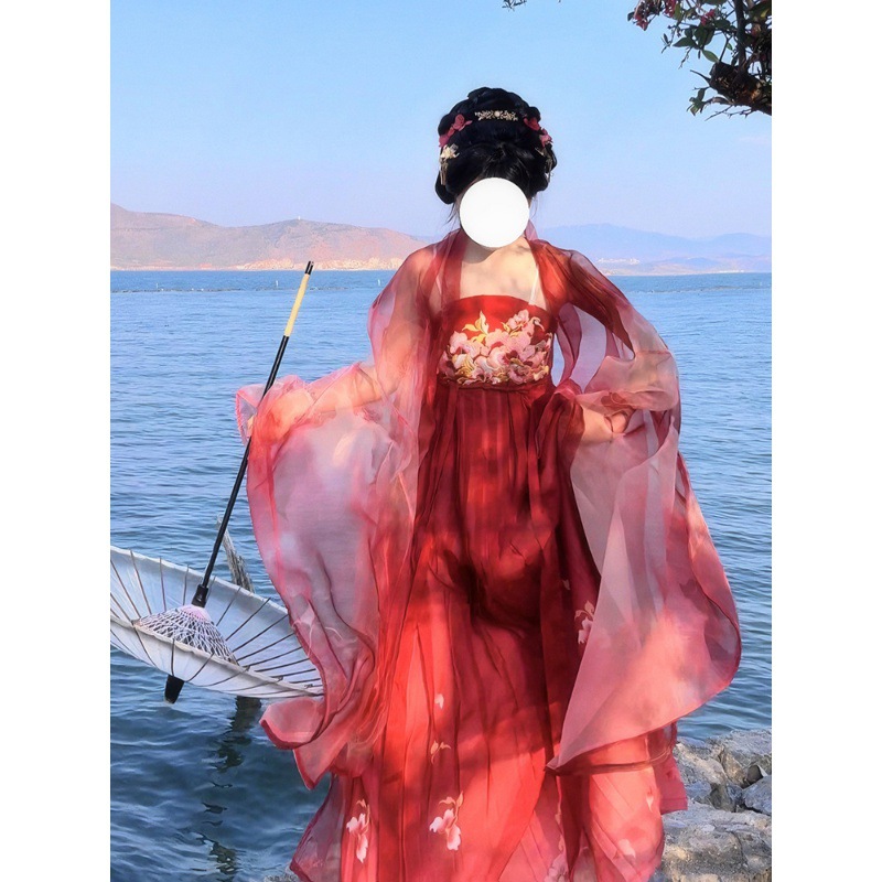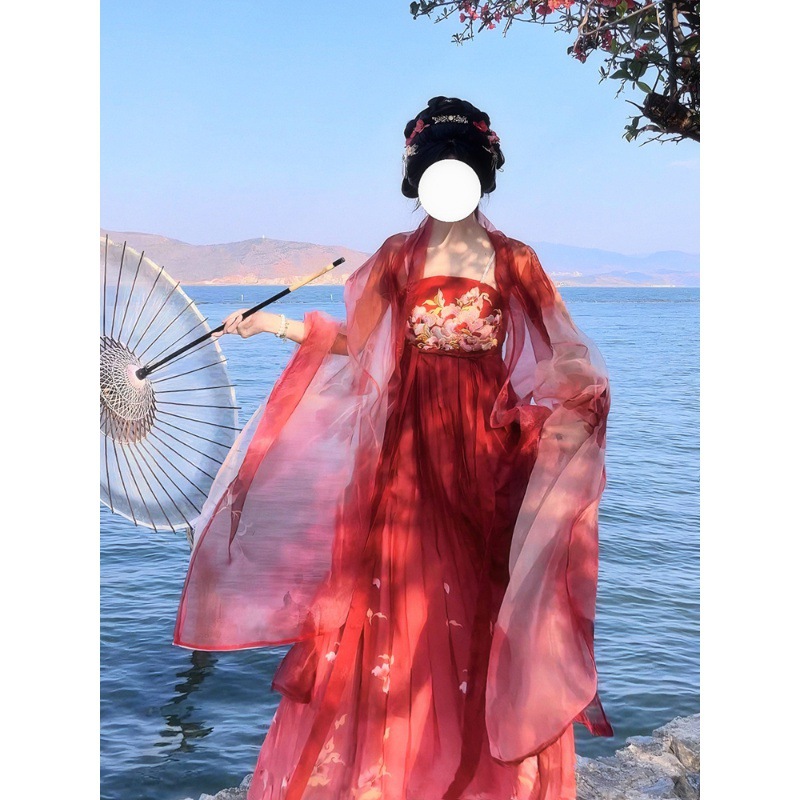 Han Yu Kui Original [Flaming] Tang Style Chest-length Big Sleeve Shirt Chebula Skirt Hanfu Female Embroidery Fairy Spring Summer Autumn Style