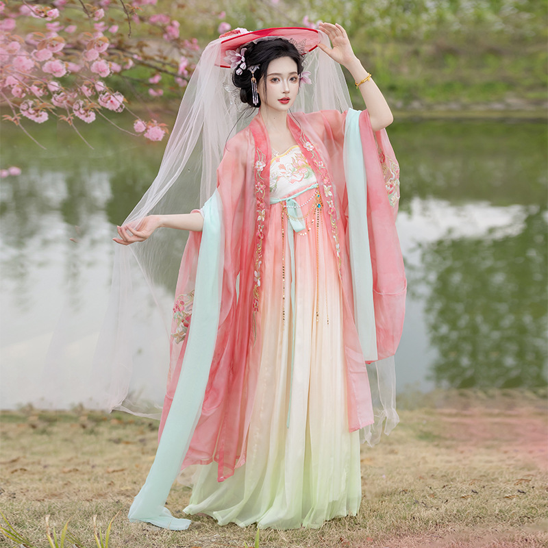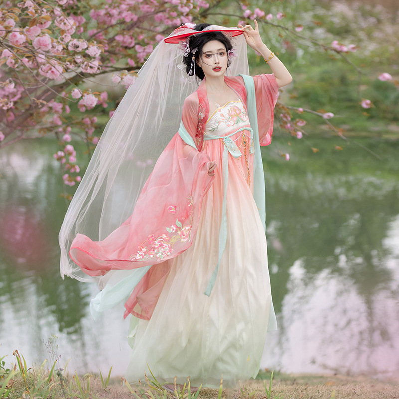 Han Yu Kui Original (Green Lotus Lotus) Tang-made Chebula Skirt Hanfu Women’s 2024 New Summer Fairy Style Sleeve Shirt