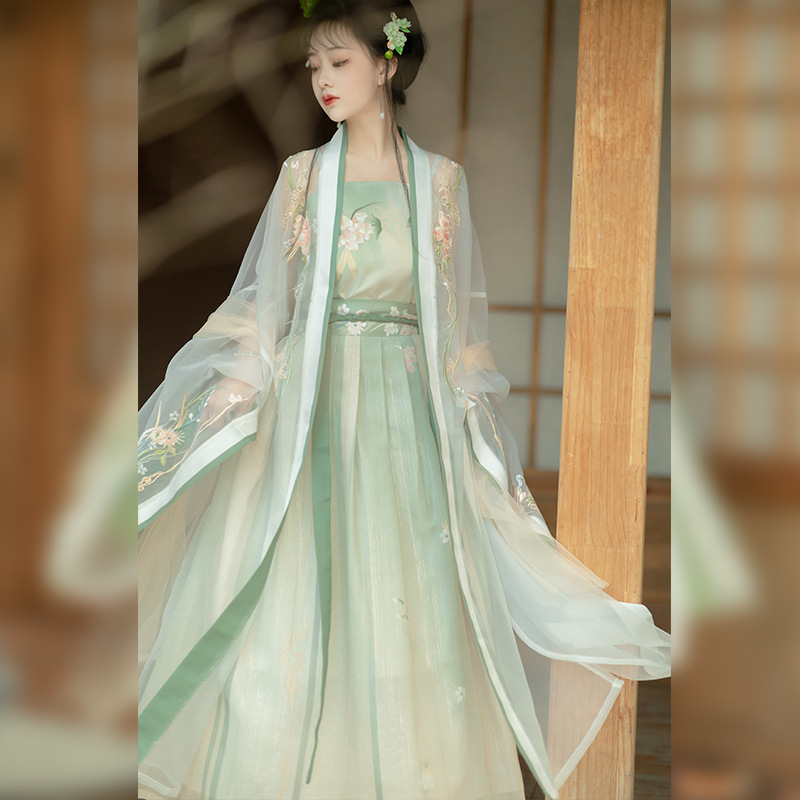 Han Yukui original Qinghuan song style gradient embroidered placket large sleeve shirt sling one piece waist pleated skirt Hanfu women